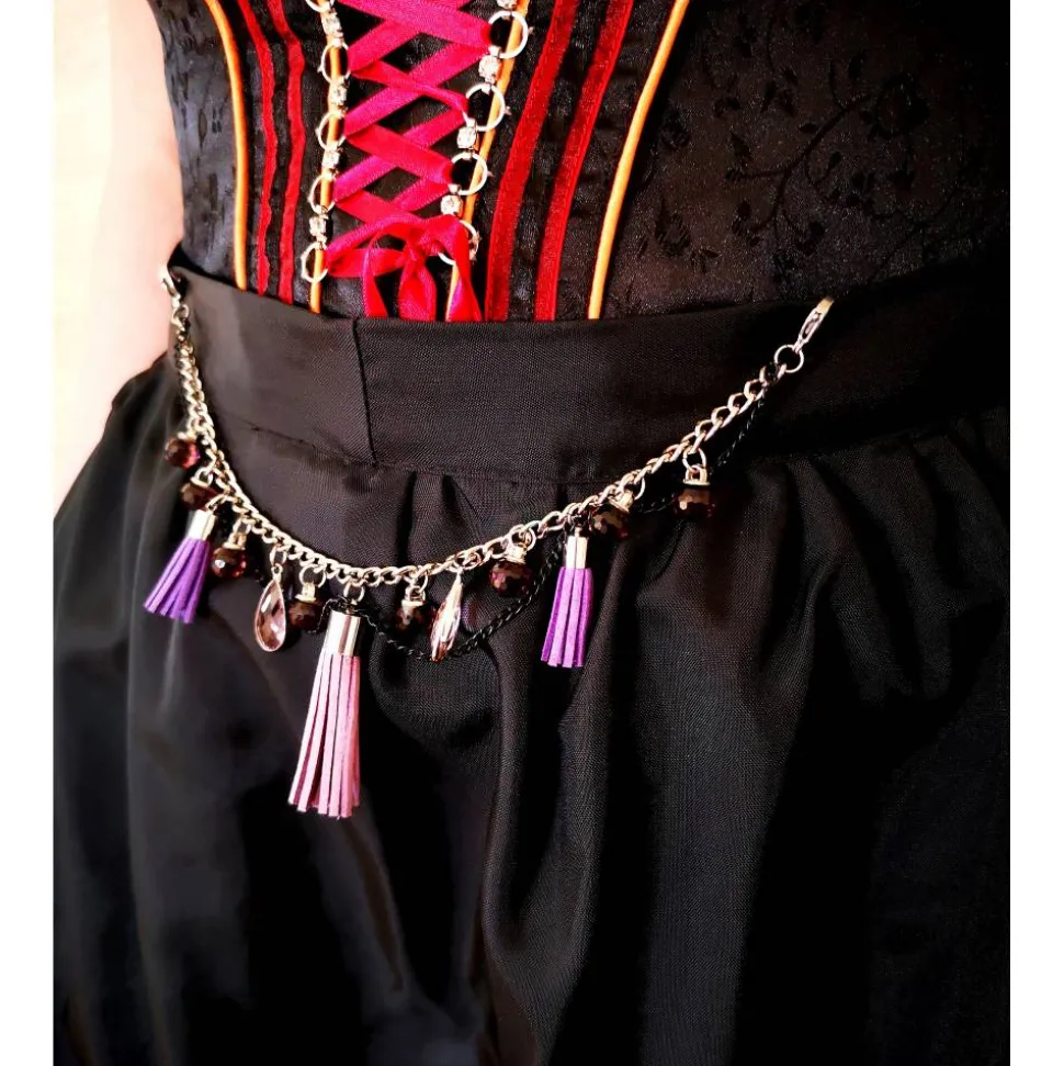 Unsere Charivaris sind meist für Schürzen (siehe Länge) gedacht. Dank großer, stabiler Edelstahlkarabiner läßt sich das Charivari problemlos einhängen und kann jederzeit gewechselt werden.