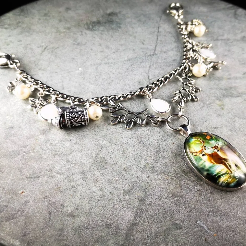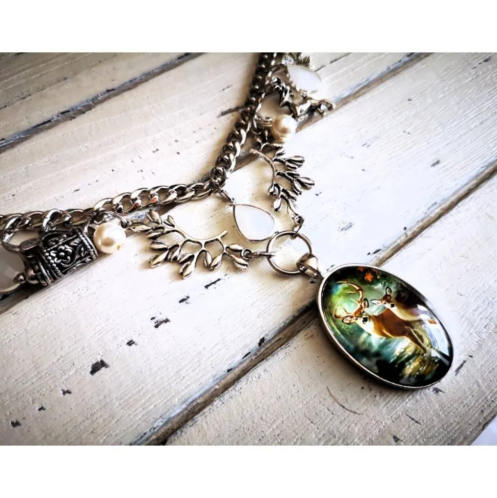 Dieses Charivari kann Schürzen und Mieder (siehe Länge) verzieren. Dank großer, stabiler, verzierter Karabiner läßt sich das Charivari problemlos einhängen und kann jederzeit gewechselt werden.