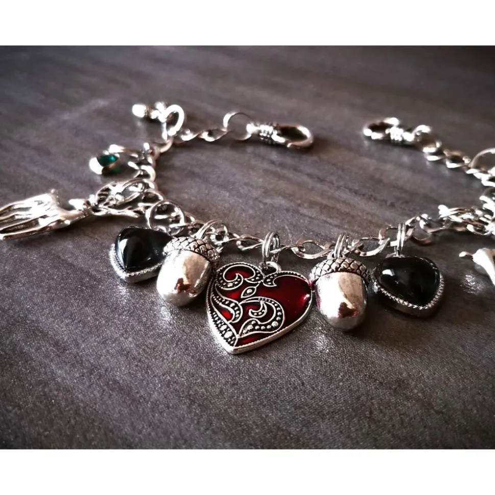 Die dunklen Glasherzanhänger in Kombination mit dem roten Schmuckherz sind ein absoluter Blickfang.