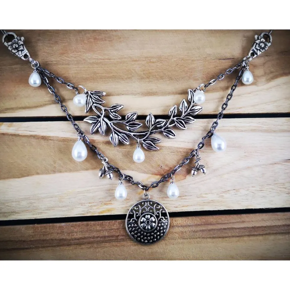 Ein großer Zweig und das Medaillon sind hier der Mittelpunkt. Die weißen Tropfenanhänger ergänzen das Bild perfekt.