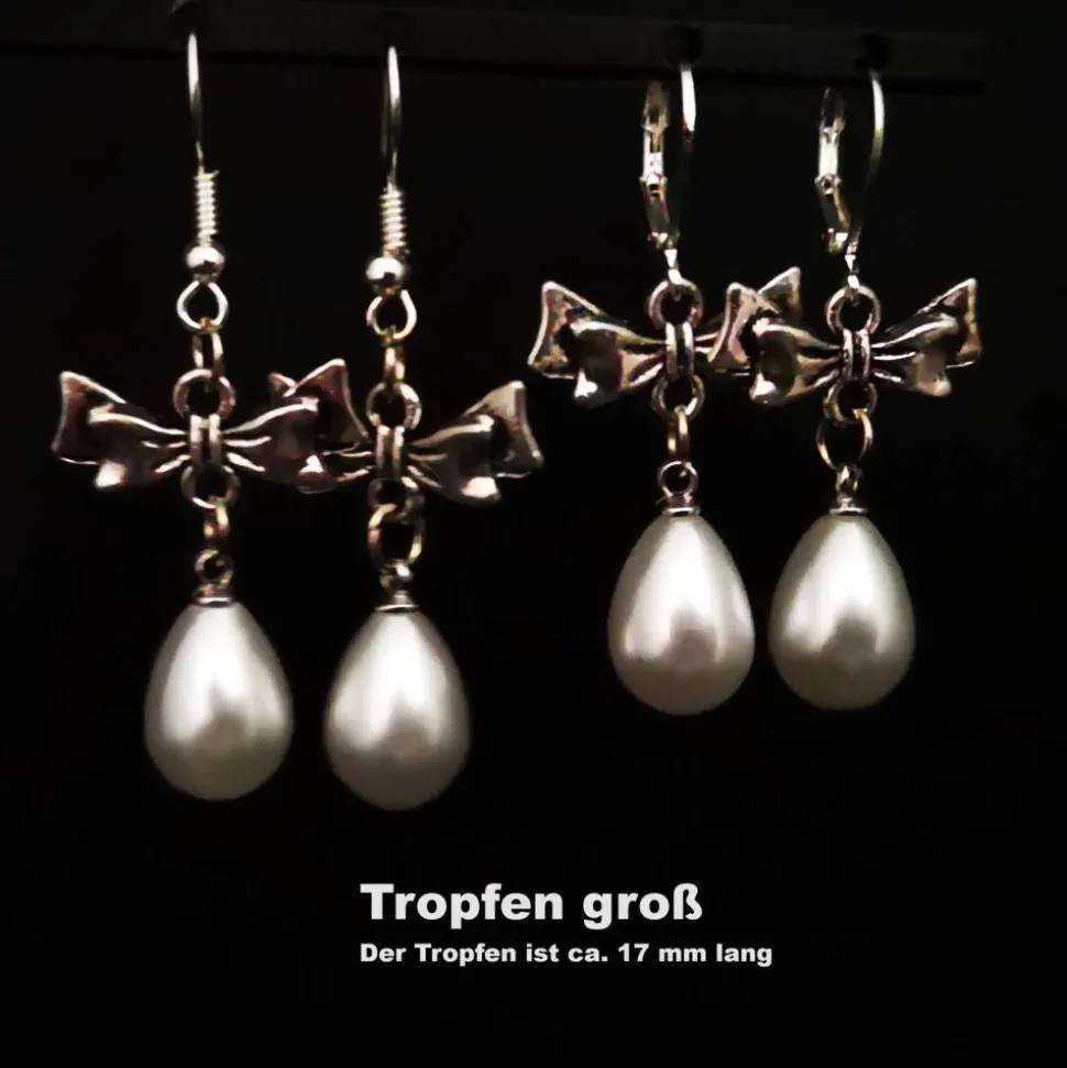 Die Ohrringe sind wahlweise mit Brisuren oder Ohrhaken erhältlich, jeweils mit verschiedenen Perlen, die auch im Charivari verarbeitet sind.