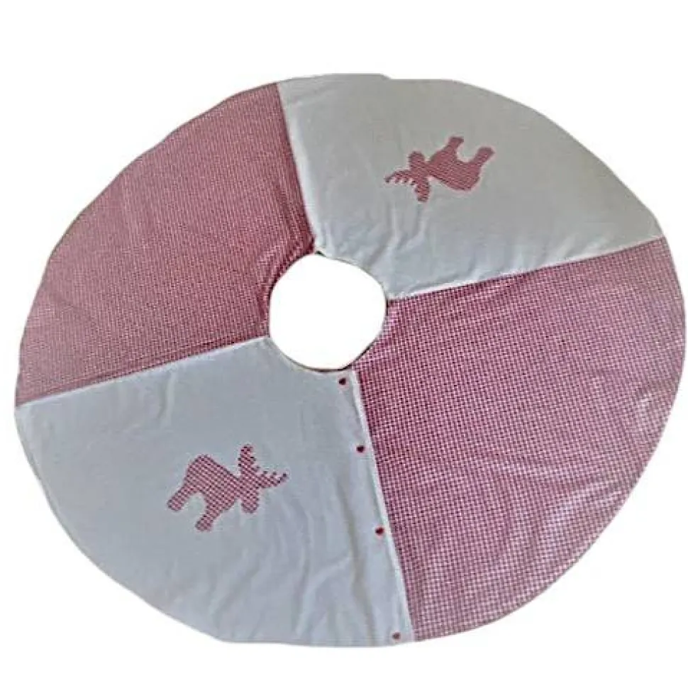 Die Christbaumdecke ist an einer Stelle durch Druckknöpfe zu öffnen, damit man sie leicht um den Baum legen kann. Die untere Seite der Baumdecke besteht aus Fleece, wodurch sie etwas schwerer und weicher ist. Somit fällt die Baumdecke schön und macht zu gleich eine kuschlig-warme Ambiente.