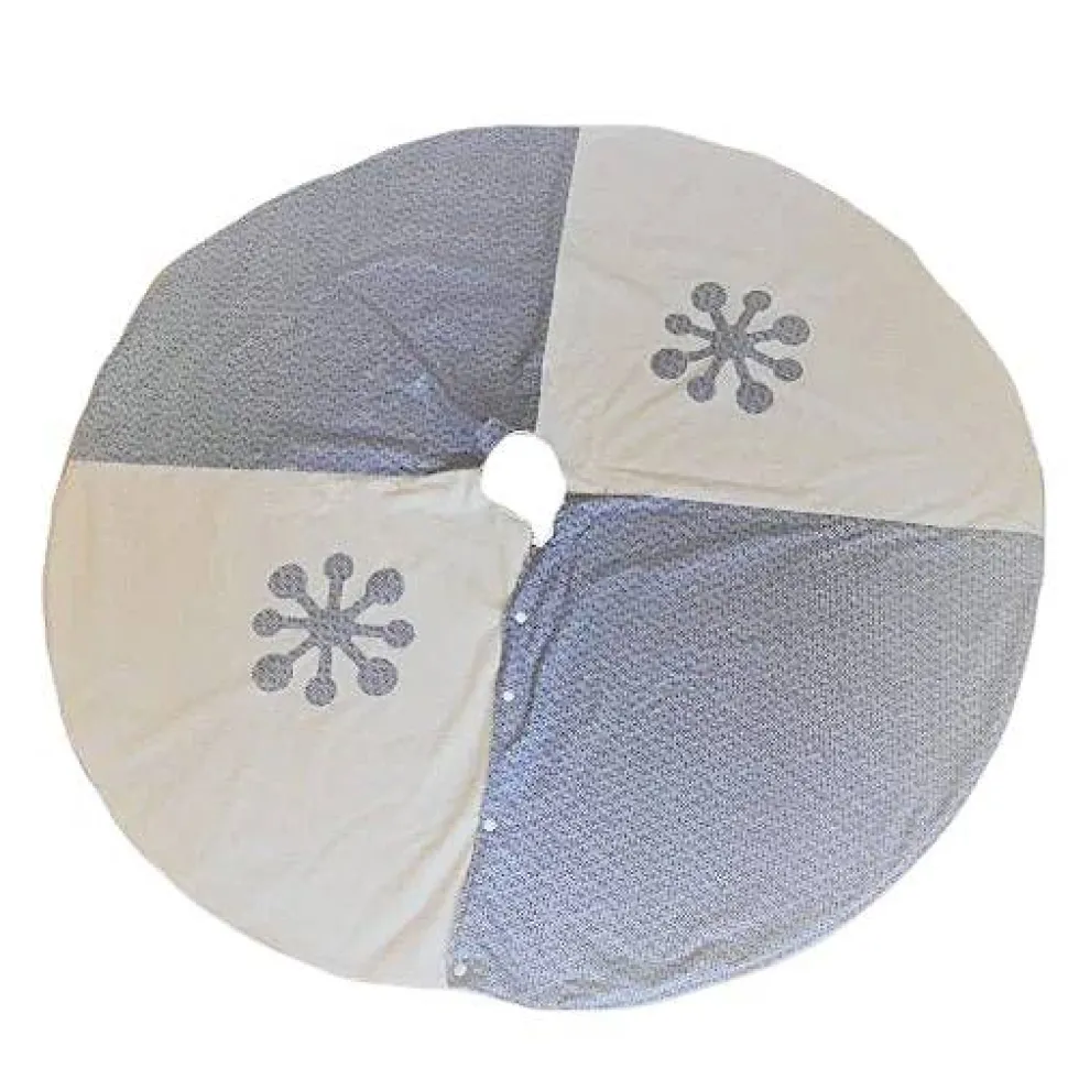 Die Christbaumdecke ist an einer Stelle durch Druckknöpfe zu öffnen, damit man sie leicht um den Baum legen kann. Die untere Seite der Baumdecke besteht aus Fleece, wodurch sie etwas schwerer und weicher ist. Somit fällt die Baumdecke schön und macht zu gleich eine kuschlig-warme Ambiente.