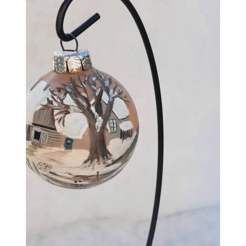 Christbaumkugel/ Weihnachtskugel aus Glas 6cm mit wunderschönem winterlichen Landschaftsmotiv