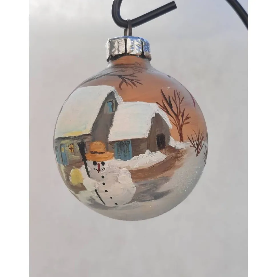 Christbaumkugel/ Weihnachtskugel aus Glas 6cm mit wunderschönem winterlichen Landschaftsmotiv