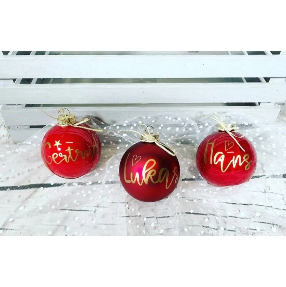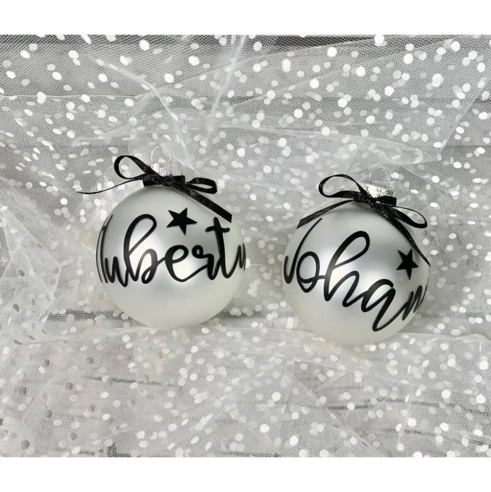 & Christbaumkugeln / Weihnachtskugeln 8 cm personalisiert – mit Stern, Herz oder Pfotenherz über dem Namen &