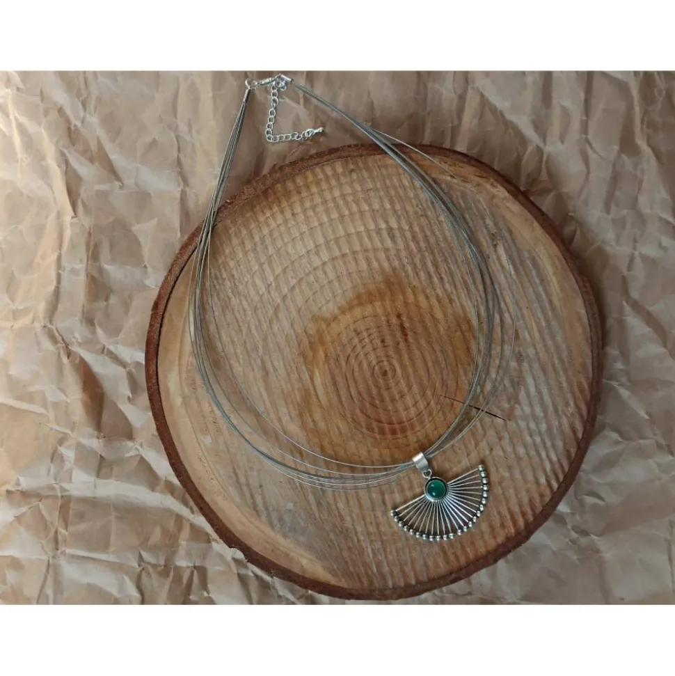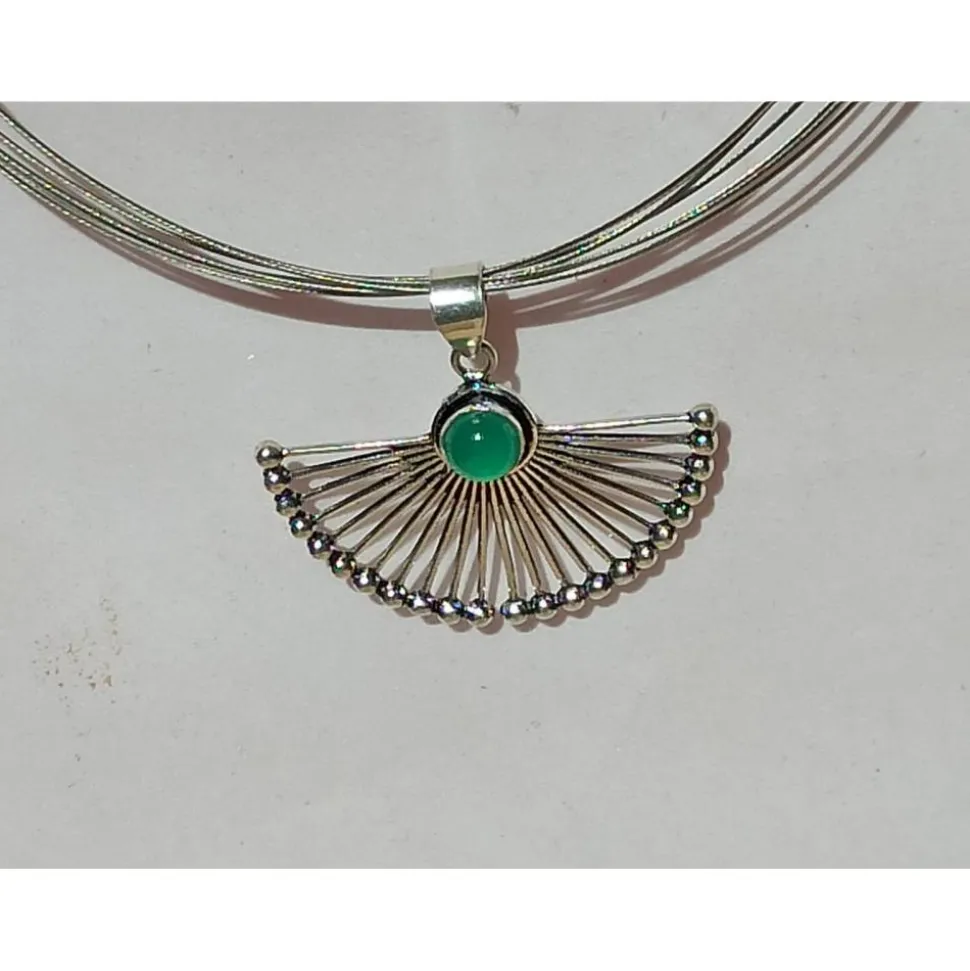 ein fächerartiger Anhänger mit eingefasstem Onyx-Stein grün