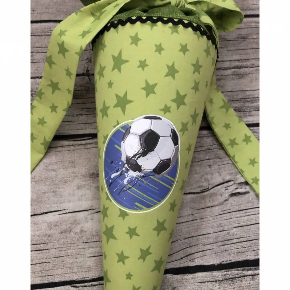 Sie ist in grün mit Sternen, verziert mit einem coolen Fußball-Motiv.