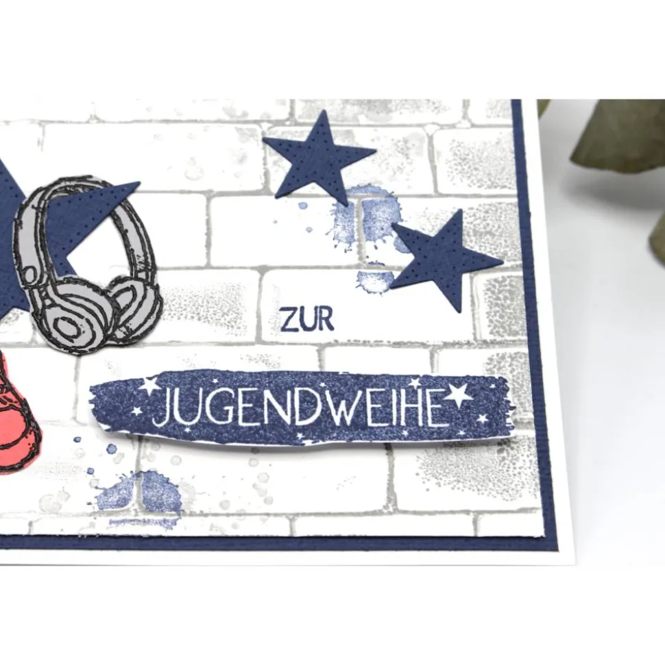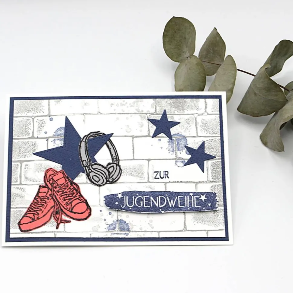 Den Schriftzug „Zur Jugendweihe“ habe ich gestempelt und mit Abstandspads auf der Karte befestigt.