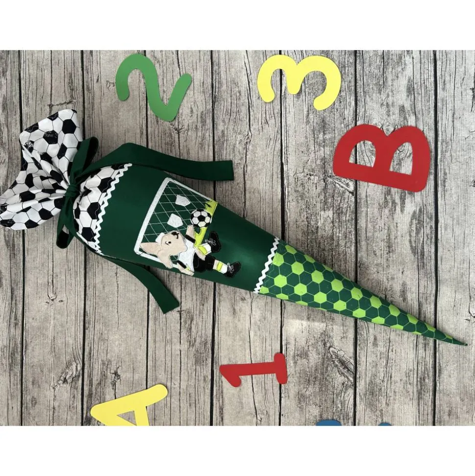 Die Schultüte ist 70cm groß, Plus der Stoff zum verschließen und genäht aus 99% Baumwolle 1%Elastan.