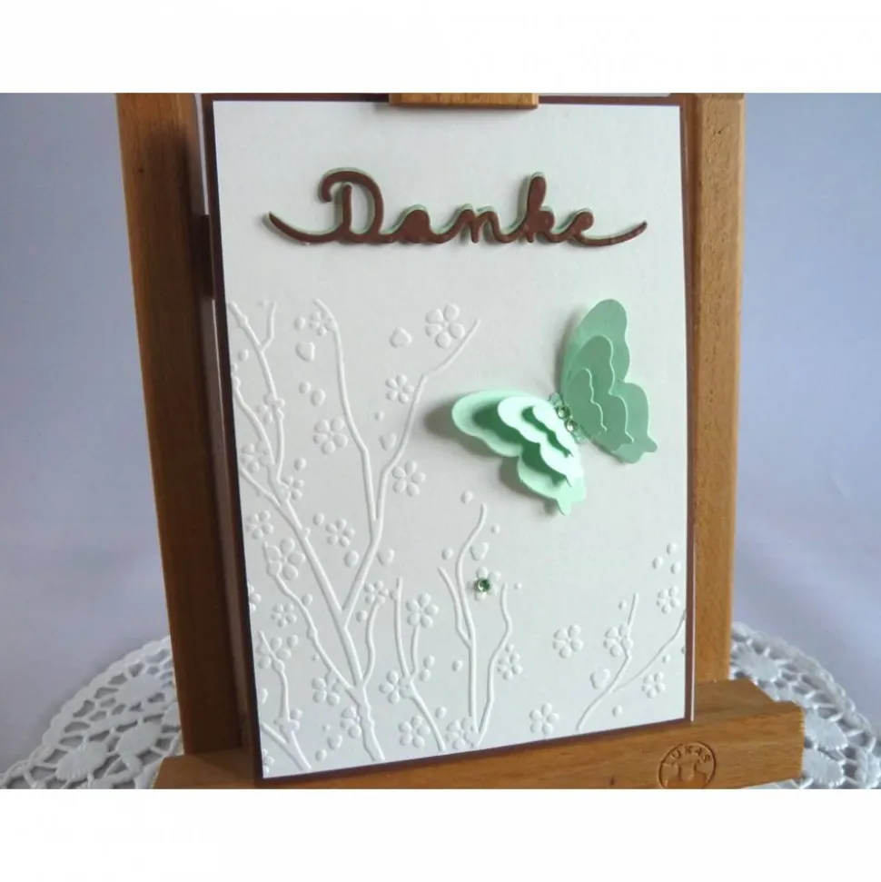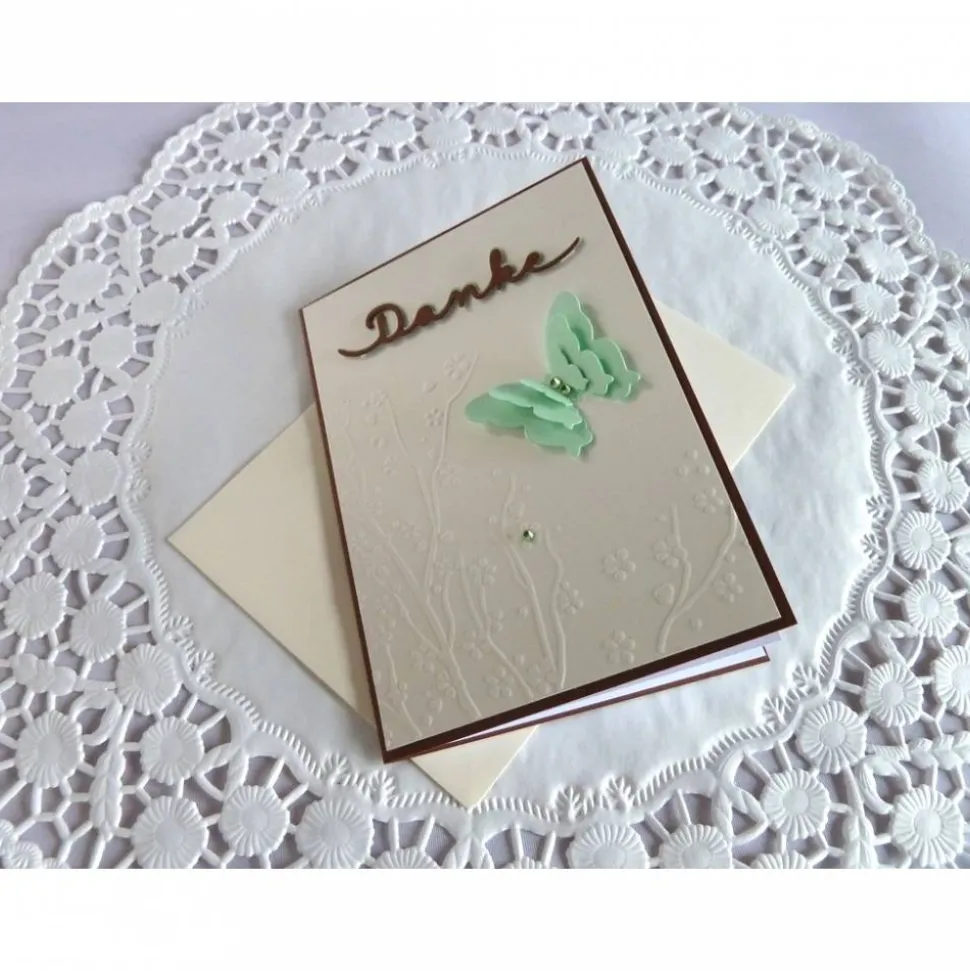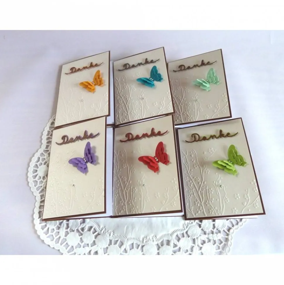 Wunderschöne Karte um sich bei Jemanden zu bedanken, mit geprägtem Hintergrund, wunderschönem 3-lagigem Schmetterling und dem Schriftzug *Danke*, den ich ausgestanzt und farblich hinterlegt habe. Zusätzlich ist die Karte mit Glitzersteinchen dekoriert. Die Karte kann auch gut zum dankesagen nach einer Hochzeit oder Konfirmation/Komunion genutzt werden.