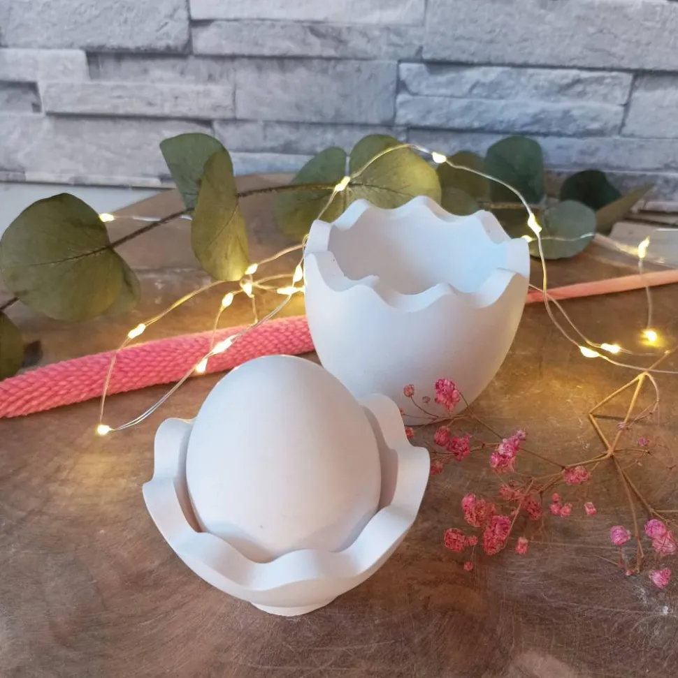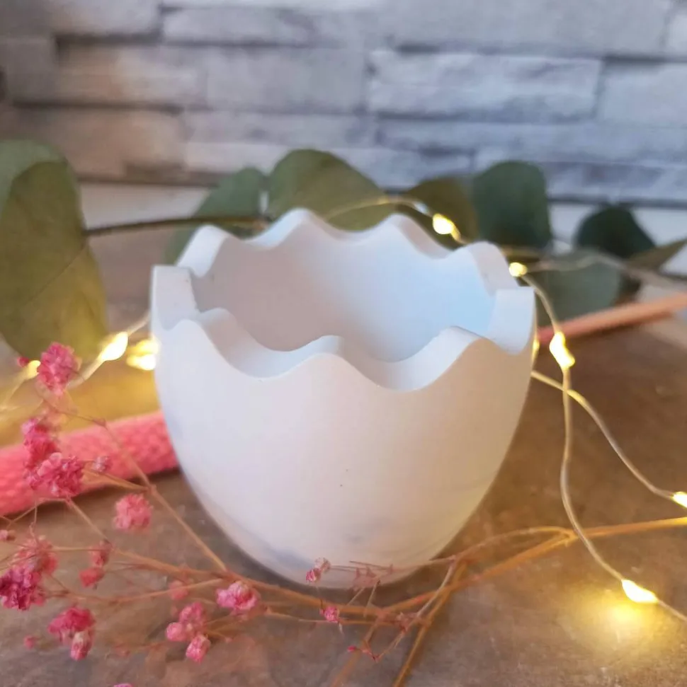 Raysin oder Keraflott, das feine, weiße Gießpulver auf Gipsbasis, verleiht meinen Eierschalen ihre unverkennbare Textur und Eleganz. Diese kleinen Kunstwerke werden von Hand gefertigt, wodurch jedes Stück ein Unikat ist. Die leichten Unregelmäßigkeiten und Lufteinschlüsse sind charakteristisch für Raysin-Dekorationen und verleihen ihnen einen Hauch von Individualität.