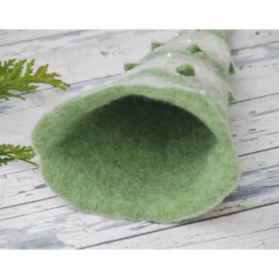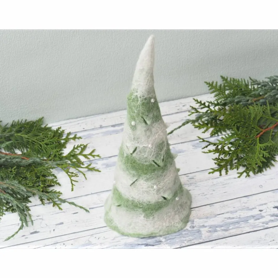 Der Baum ist handangefertigt in Nassfilztechnik aus 100% Wolle. Aus feinster grüner und weißer Merinowolle.