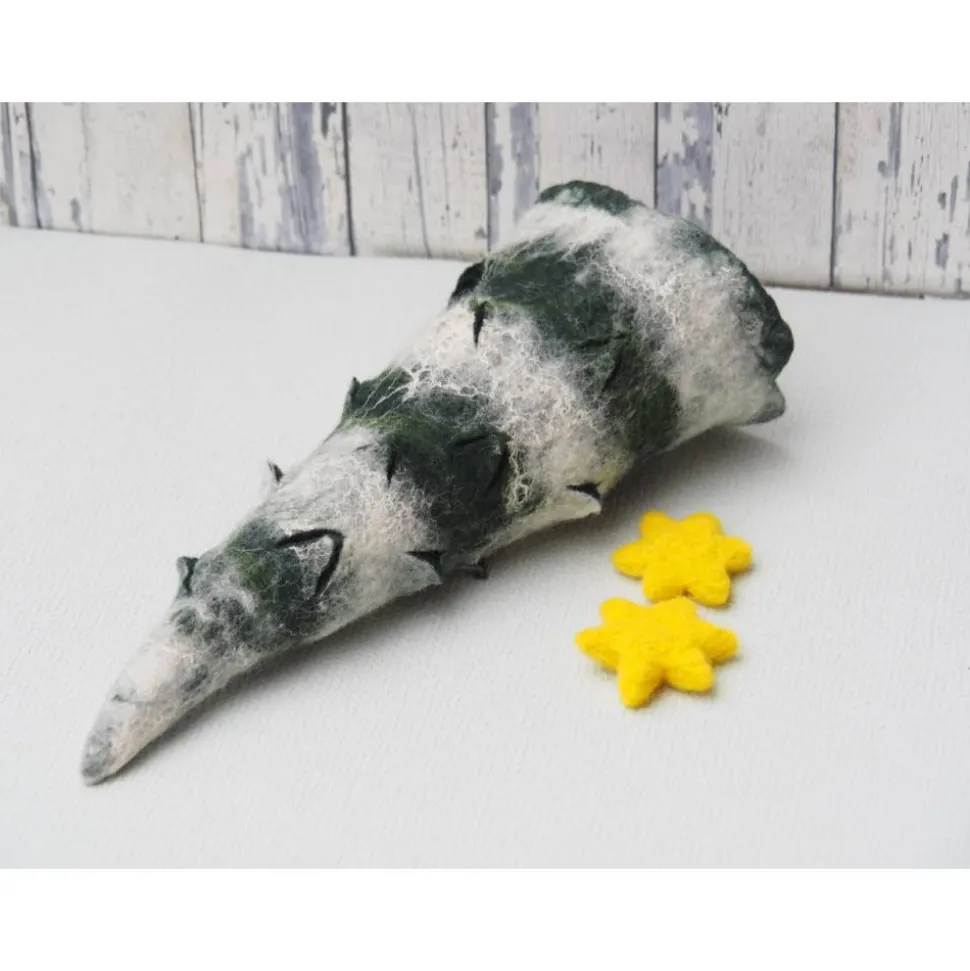 Der Baum ist gefertigt in Nassfilztechnik aus 100% Wolle.
