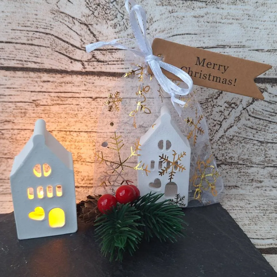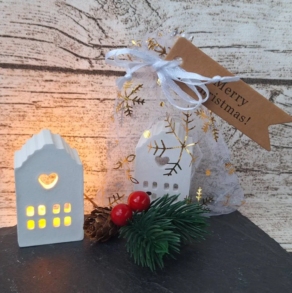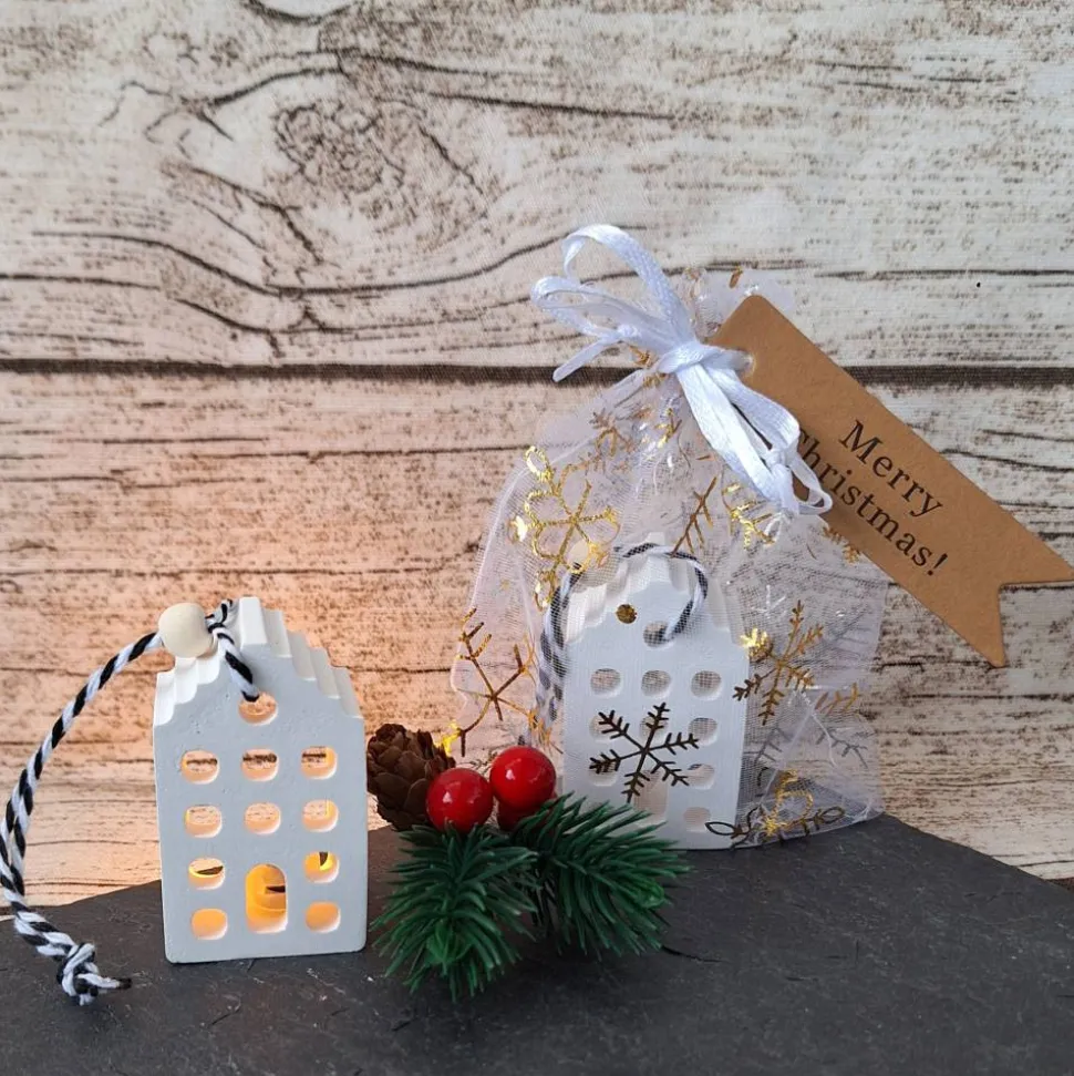 Sie sind in einem weihnachtlichen Organzasäckchen mit kleinem Anhänger verpackt.
