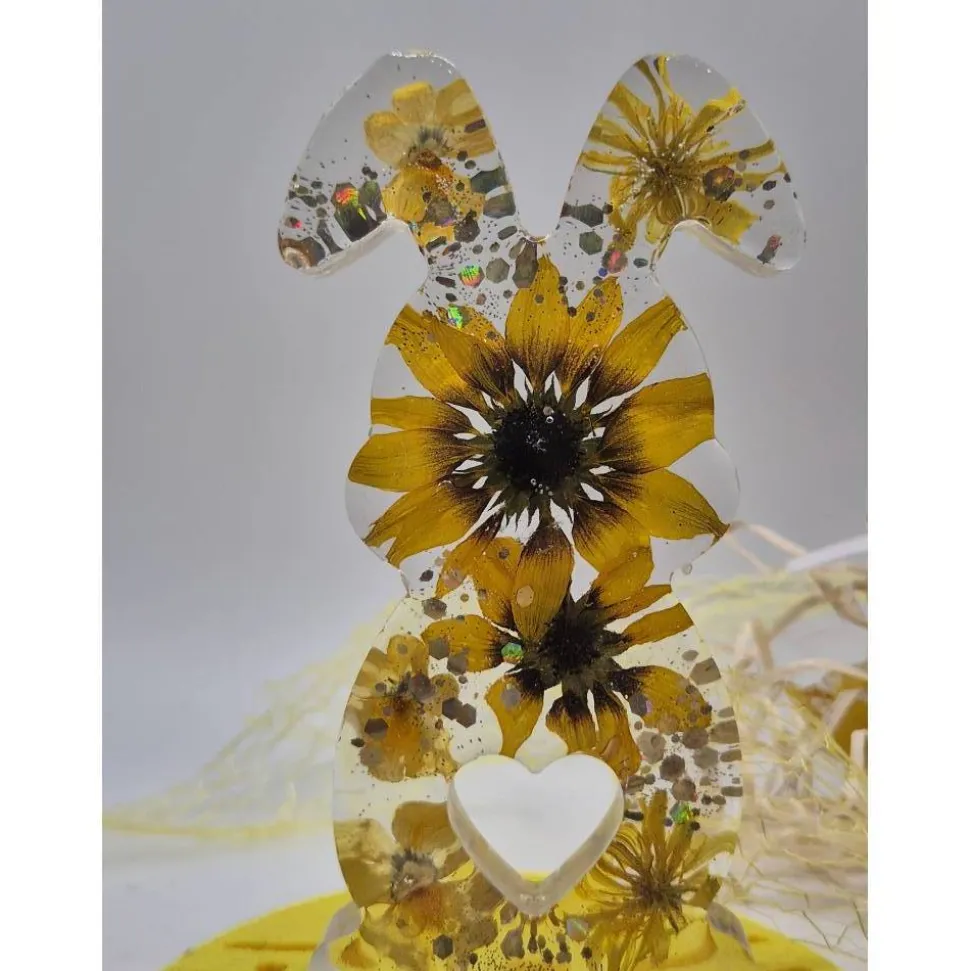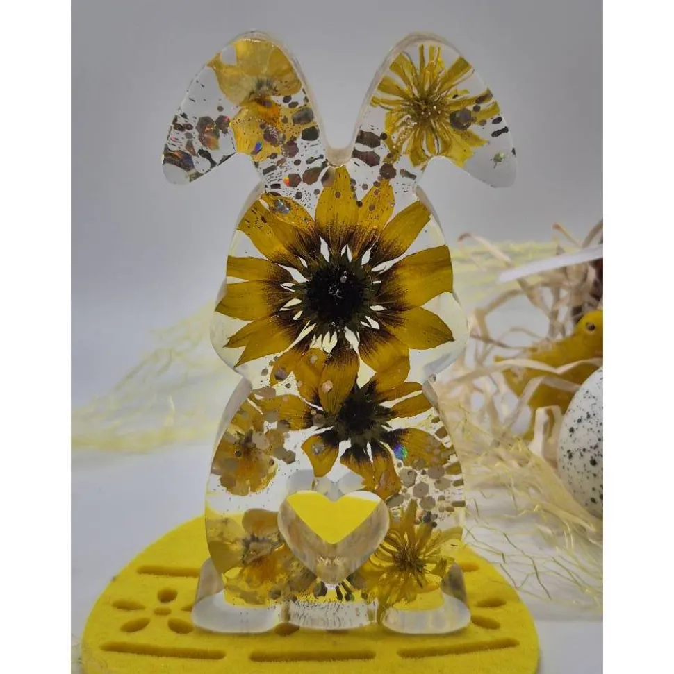 Handmade Osterhase aus Epoxidharz mit echten Blüten – ca. 12 cm