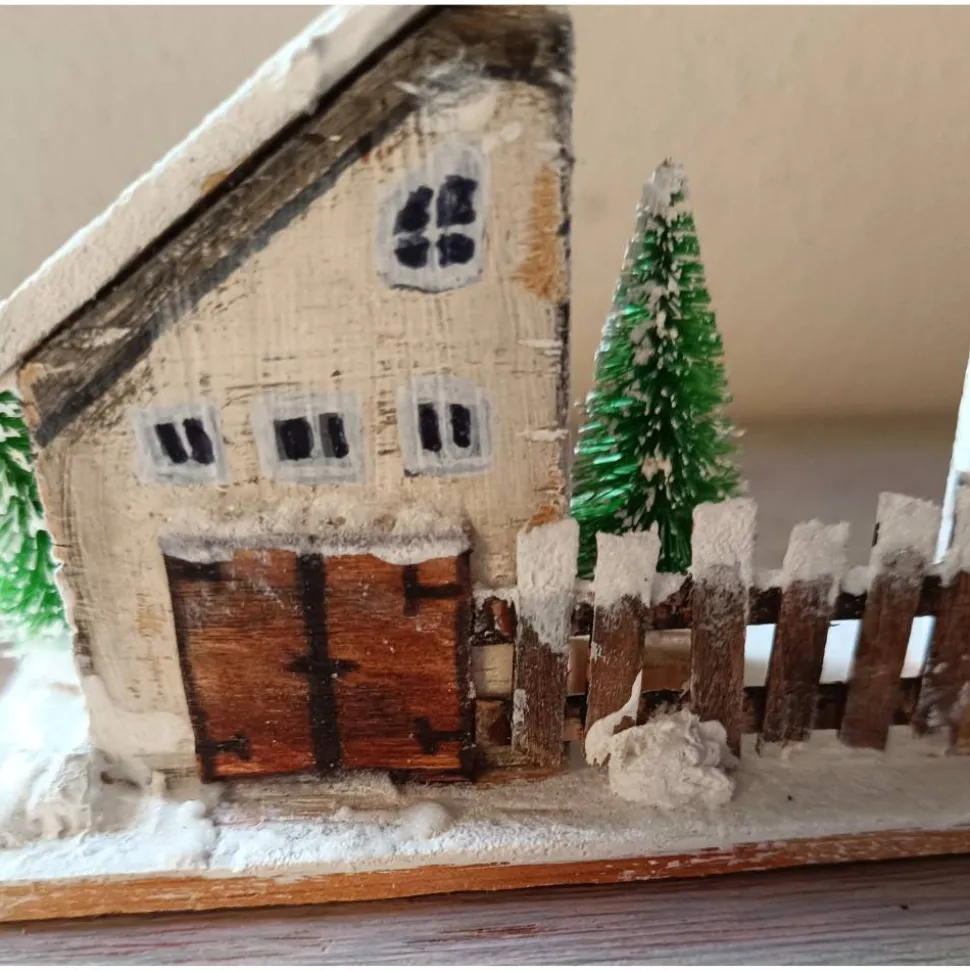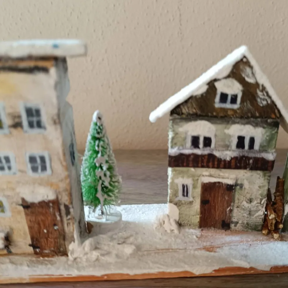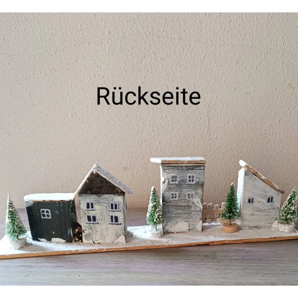 die Häuschen sind gesägt, geschliffen und mit Acrylfarben handbemalt,