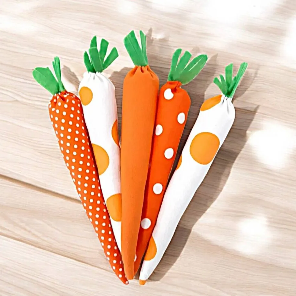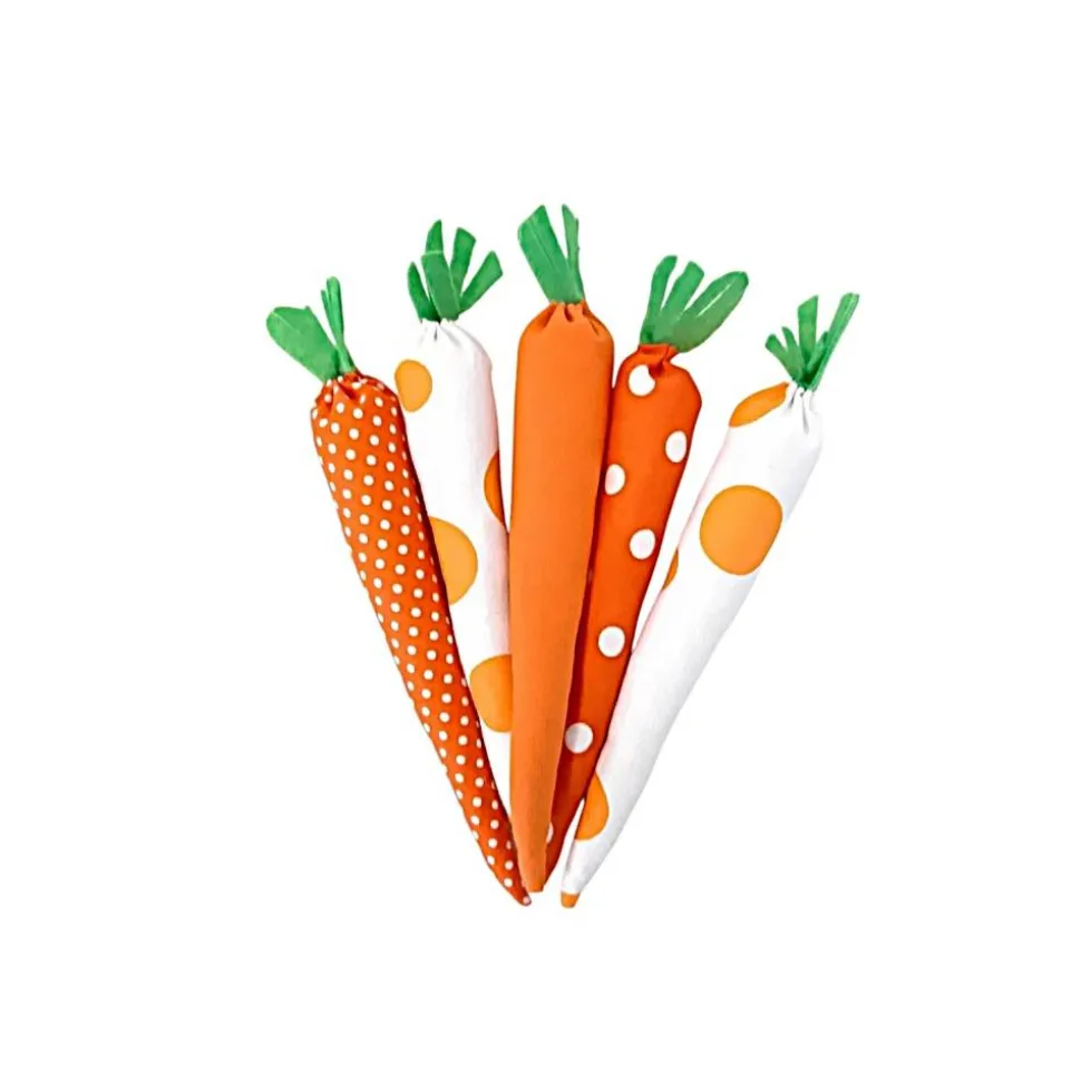 5-er Set Deko Möhren aus Stoff. Tolle Oster- und Frühlingsdeko, sieht schön im Osterkörbchen aus. Auch für den Kinderkaufladen bestens geeignet.