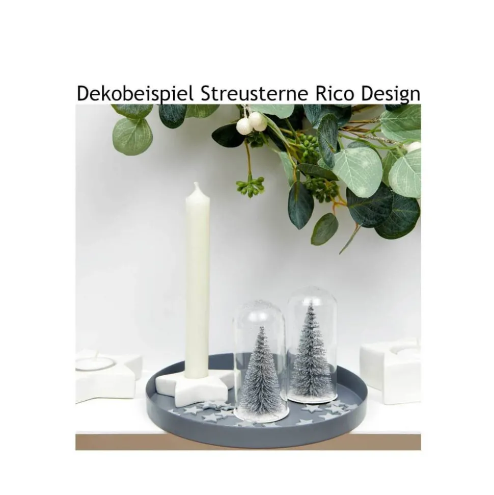 Die kleinen Holzsterne sind perfekt für Adventskränze und Gestecke. Mit den Sternen lassen sich glänzende Effekte auch auf einem Dekoteller erzielen.