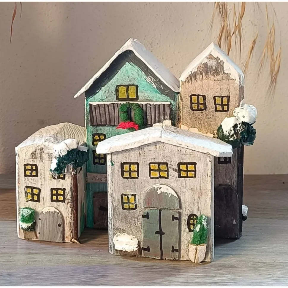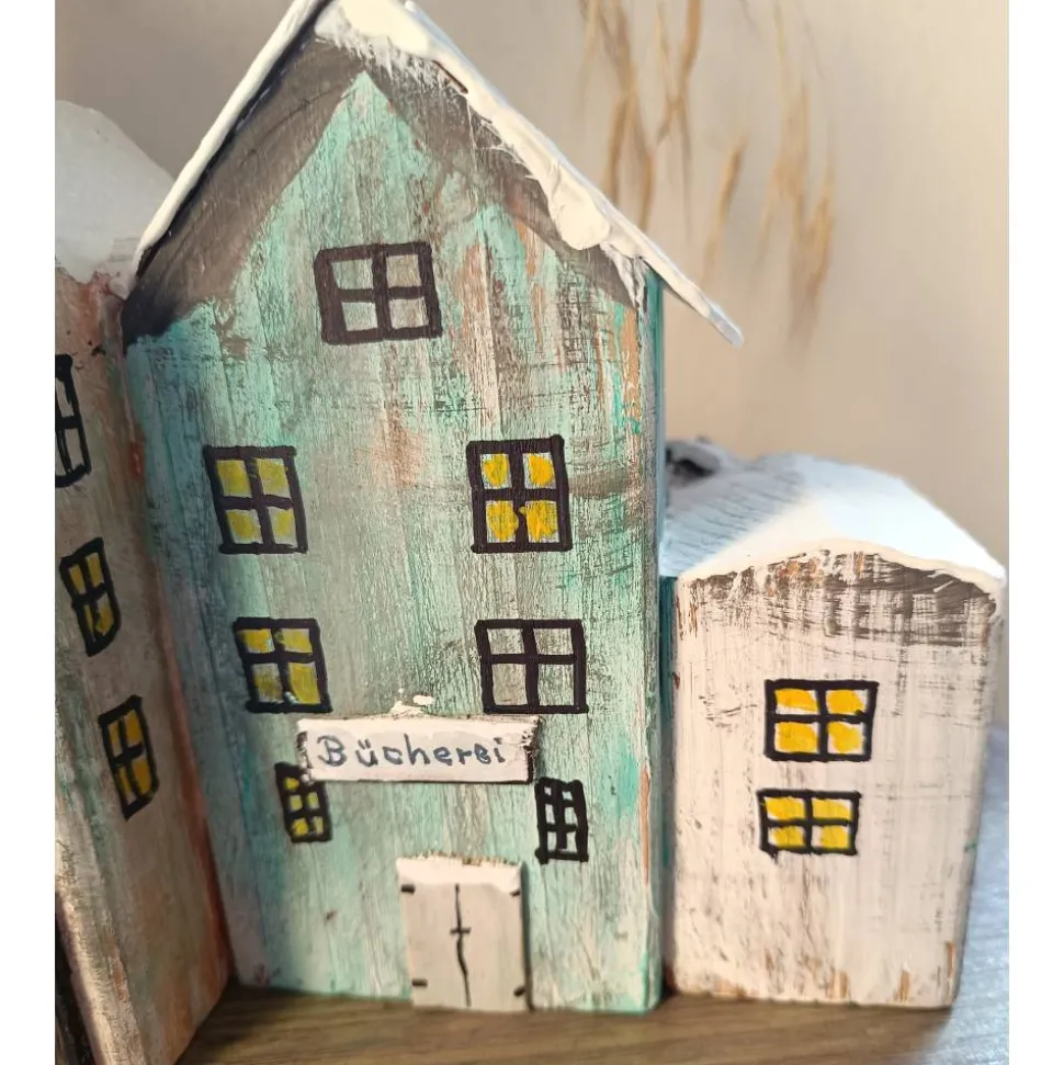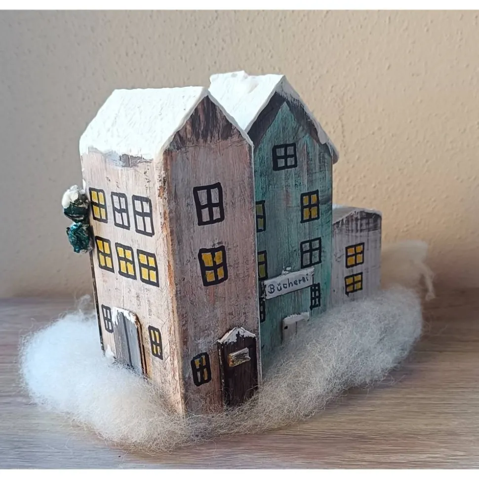 Die Häuschen sind zusammengeleimt, bzw. in einem Stück !