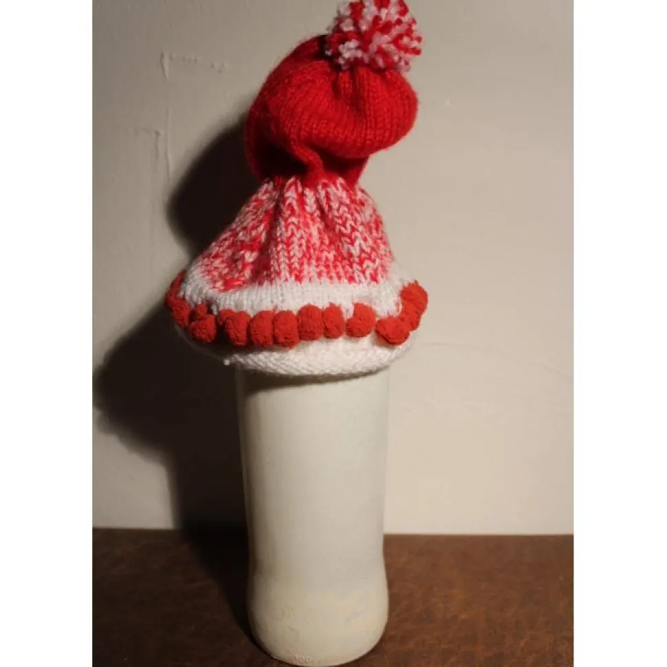 Weihnachtswichtel aus einer Weinflasche. Witziges Upcycling-Projekt, gestaltet mit Acrylfarbe und einem handgestrickten Wollmützchen. Verziert mit Schneemännern aus Ton und dekoriert mit Glitzersteinchen. Lustige Dekofigur für die Herbst- und Weihnachtszeit. Die Figur kann auch als Geldgeschenk verwendet werden indem man mit einer Klammer einen Geldschein oder Gutschein an der Mütze festklemmt.