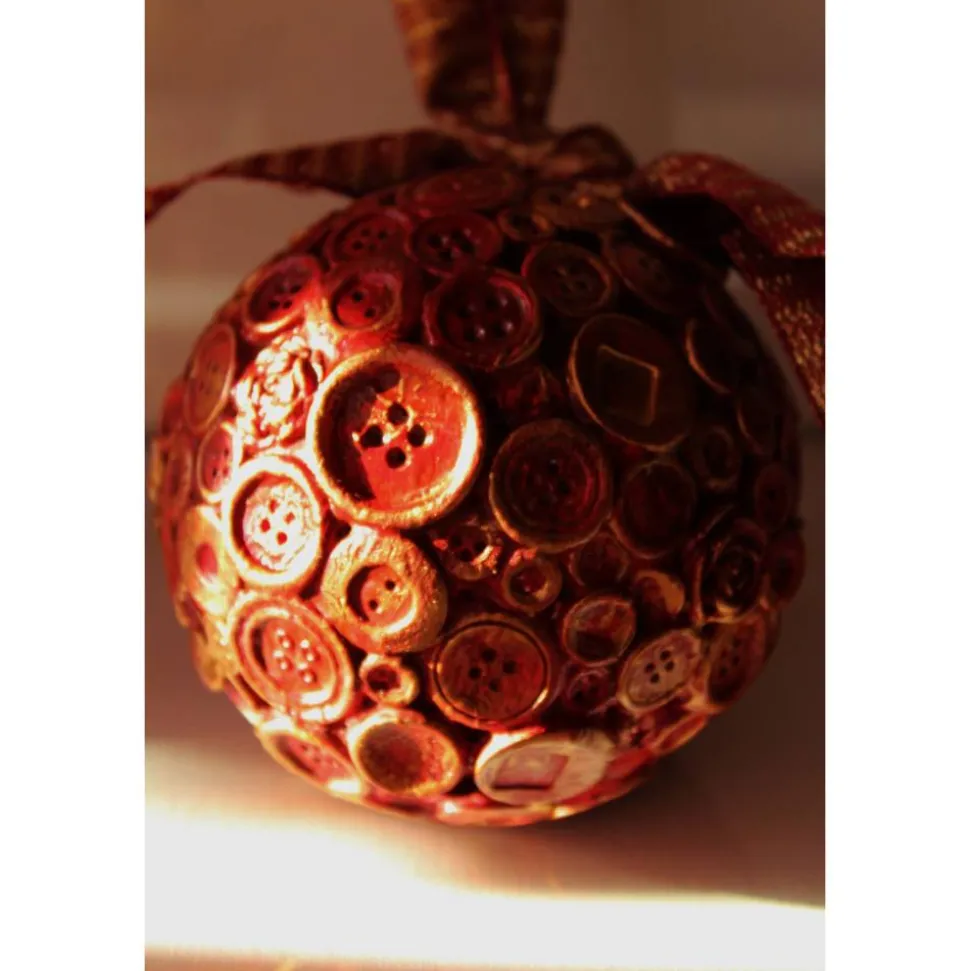 Handbemalt mit Acrylfarben in Rot, Gold und Braun, im angesagten Vintage-Stil. Dekoriert mit Knöpfen aus Kunststoff. Das Band ist an einem Haken befestigt, kann nach belieben ausgetauscht werden.Durchmesser: ca. 10 cm