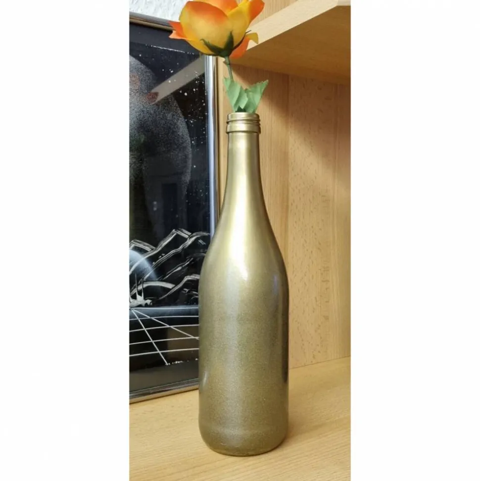 -Die Flasche ist mit Acryllack eingesprüht worden, damit sie mit einem feuchten Tuch gereinigt werden kann.