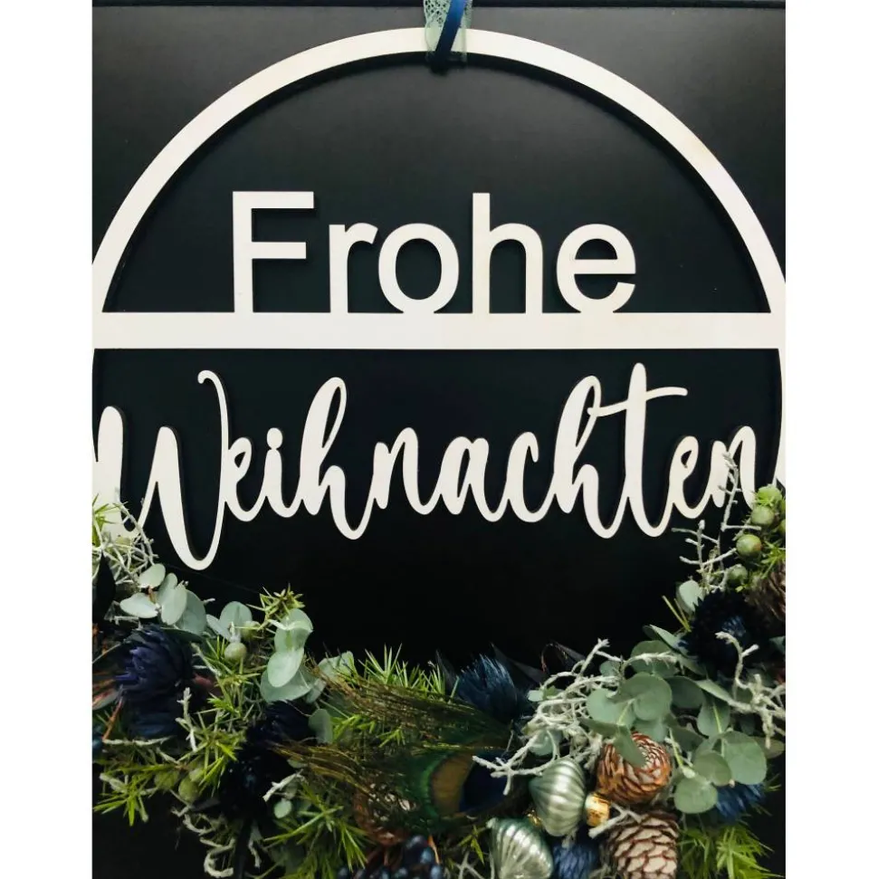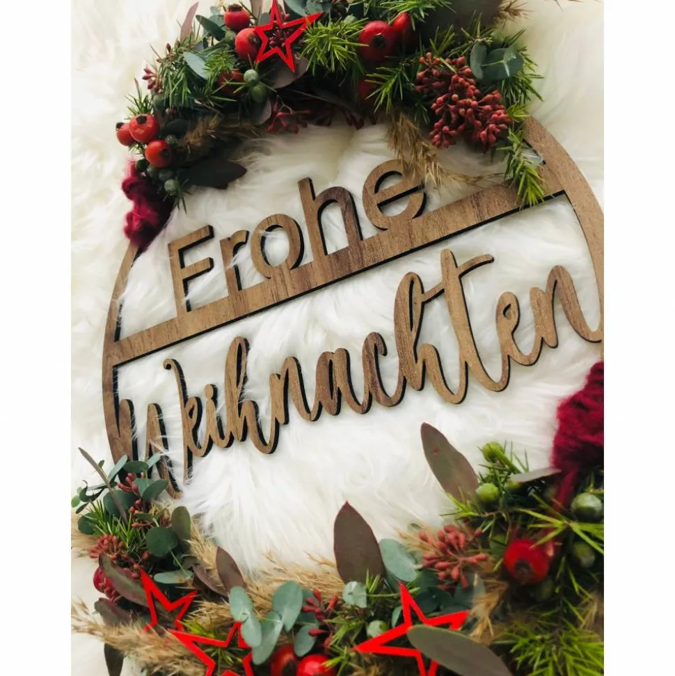 Du kannst ihn mit einem Band und einem Nagel (beides nicht im Lieferumfang enthalten) an der Wand oder der Türe befestigen. Bitte bringe den Dekoring absolut Wind- und wetterfest an und schütze ihn vor direktem Regen.