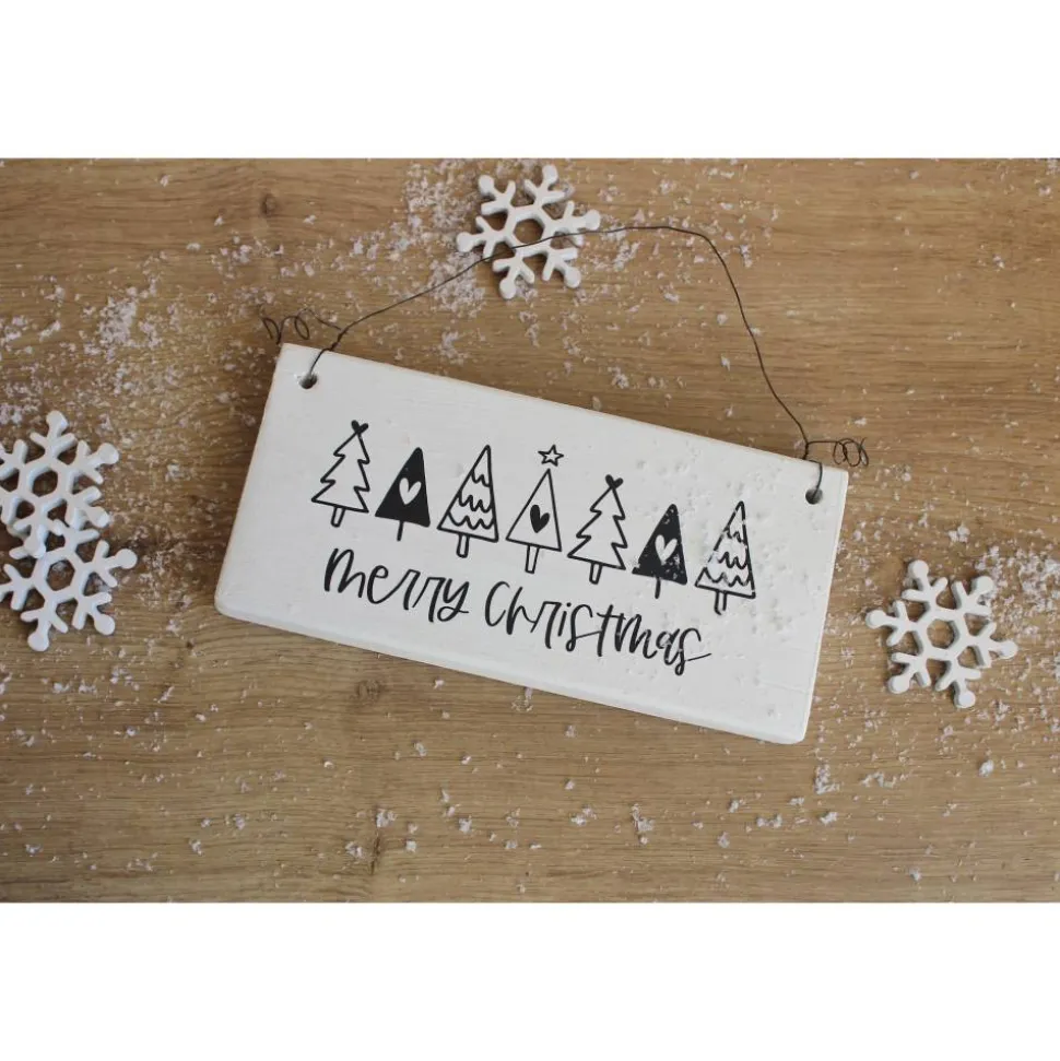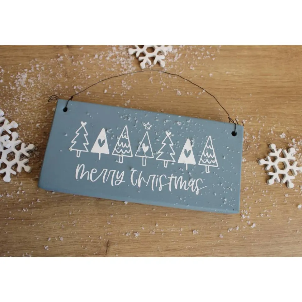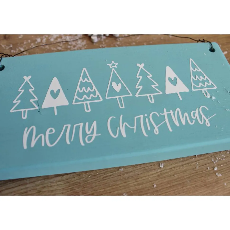 Die Schilder werden geschliffen, gebohrt, mit einer sanft-matten Kreidefarbe gestrichen, mit einer Vinylfolie beplottet und anschließend gewachst (außer weiß, rauchblau, türkis). Für die Aufhängung ist ein Draht angebracht. Ich empfehle dein Schild nur innen zu verwenden, wenn du lange Freude daran haben möchtest, da die Farben nicht wasserabweisend sind.