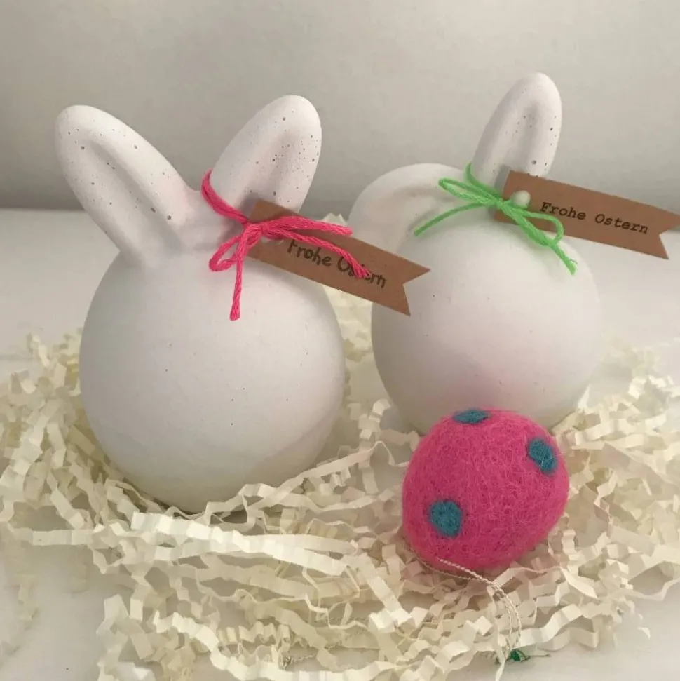 Du kannst wählen zwischen einem Hasen mit stehenden Ohren oder einem mit Knickohr.