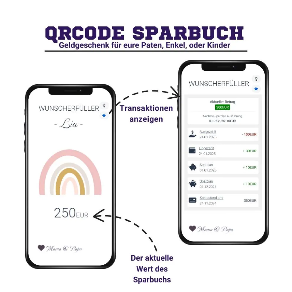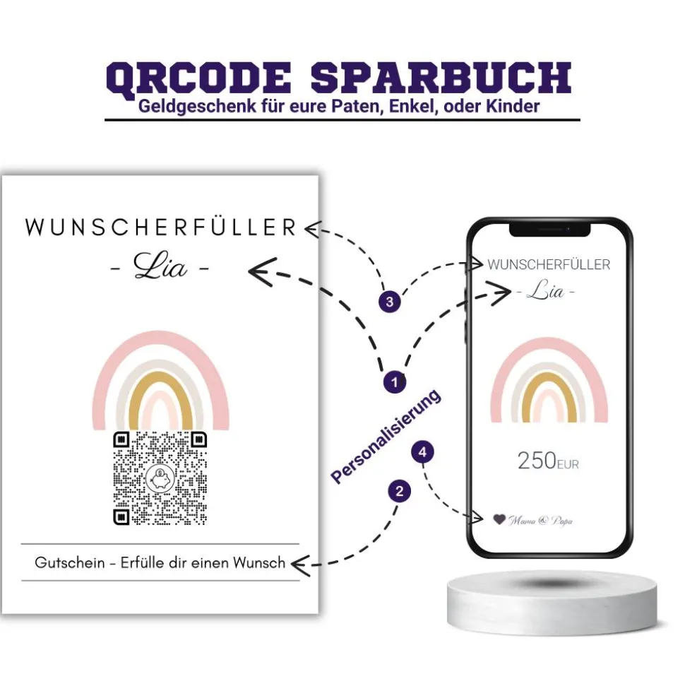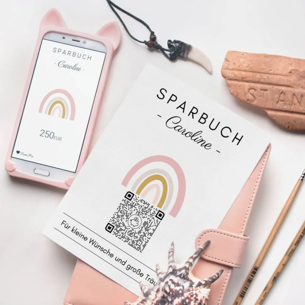 Digitale Spardose | Personalisiertes Geldgeschenk | QrCode Geschenkkarte | Regenbogen