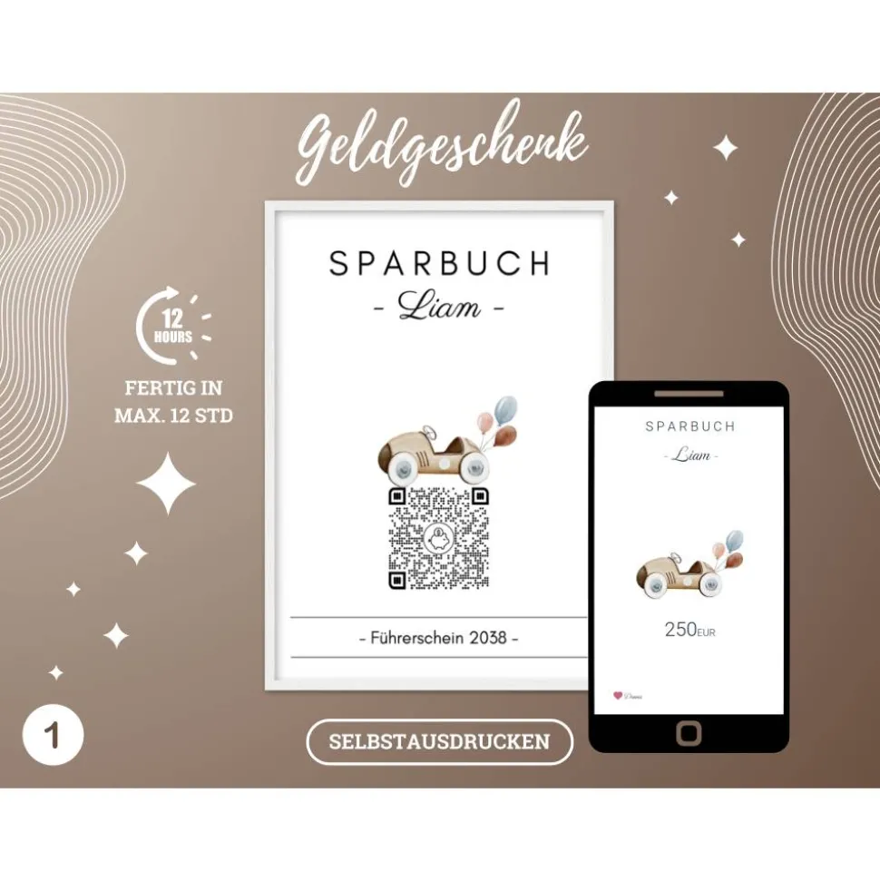 Digitale Spardose | Personalisiertes QrCode Geldgeschenk | Führerschein Auto Motorrad | Download