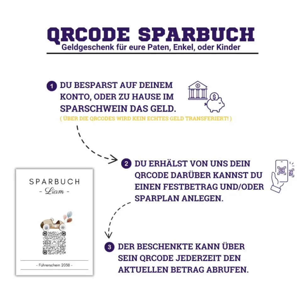 ❤️️ Du möchtest deinem Patenkind, Enkelkind einen kleinen Zuschuß für den Führerschein schenken. Oder willst direkt zur Geburt, oder Taufe deines Kindes anfangen einen kleinen Betrag monatlich für das erste Auto zu sparen? Dann verschenke symbolisch dieses virtuelle Sparbuch als Bild.