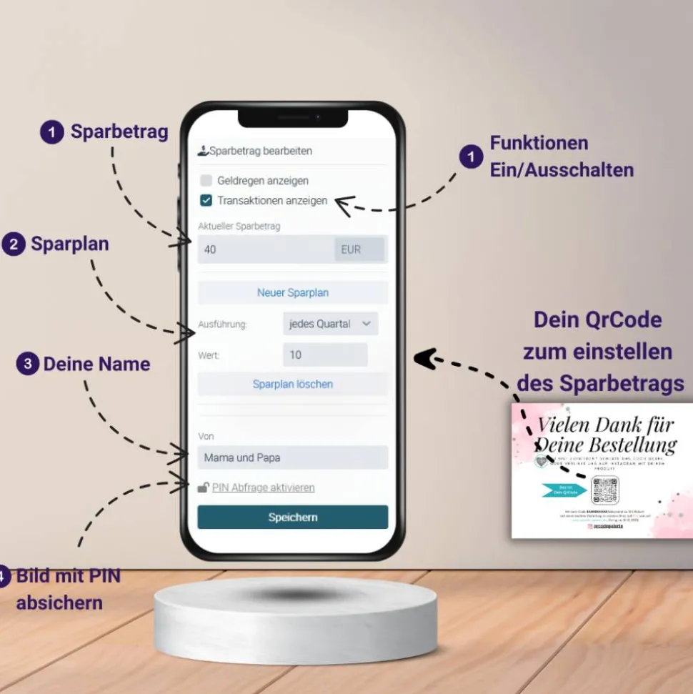 ❤️️ Du möchtest deinem Kind, Patenkind, Enkelkind einen Gutschein mit einem Festbetrag für einen kleinen, oder großen Wunsch schenken? Oder willst direkt zur Geburt, Taufe, oder dem ersten Geburtstag anfangen einen kleinen Betrag monatlich für den Führerschen, oder das erste Auto zu sparen? Dann verschenke symbolisch diese digitale Spardose als Bild auf Leinwand (20x30cm).