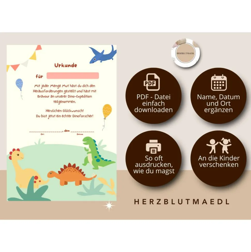 Für eine persönliche Note bieten wir dir die Möglichkeit, deine eigene Botschaft oder Widmung auf der Urkunde zu verewigen. Gegen einen geringen Aufpreis von nur 5 Euro kannst du deinen individuellen Text hinzufügen lassen, sei es eine herzliche Glückwunschnachricht, ein inspirierendes Zitat oder ein spezielles Datum. Dieses Angebot ist exklusiv in unserem Shop verfügbar, um sicherzustellen, dass dein Mitgebsel noch persönlicher wird. Lege einfach meinen Artikel „Urkunde mit Wunschtext“ zusätzlich in deinen Warenkorb und hinterlasse uns deine gewünschte Nachricht. Wir kümmern uns dann um den Rest, damit der Kindergeburtstag für immer unvergesslich bleibt.