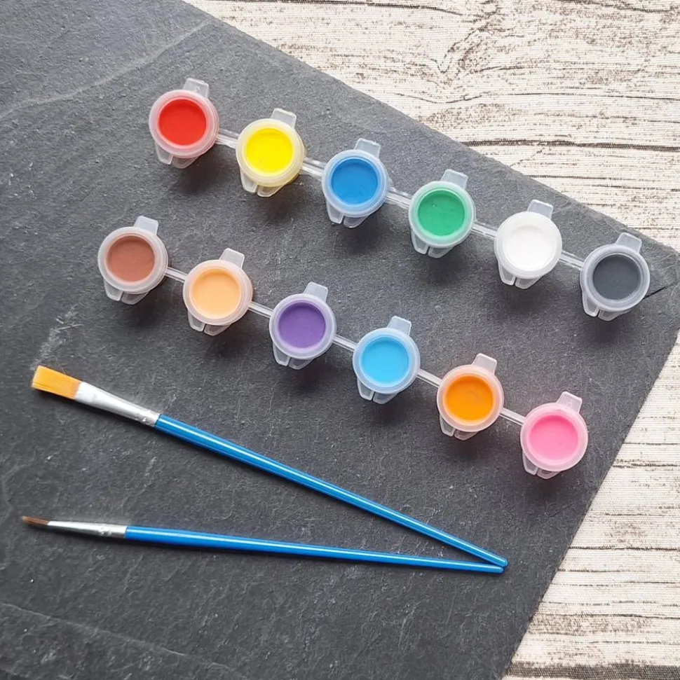 Sie benötigen das Farb- und Pinselset und suchen sich aus, welche Motive Sie zum anmalen haben möchten.