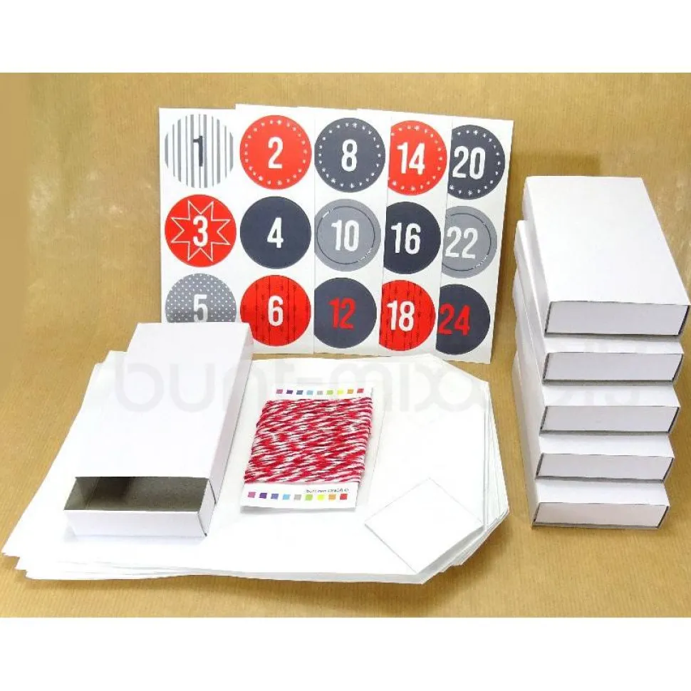 – 24 Stück Sticker, Durchm. ca. 4 cm, selbstklebend. Rot-grau-weiß, mit den Zahlen 1 – 24.