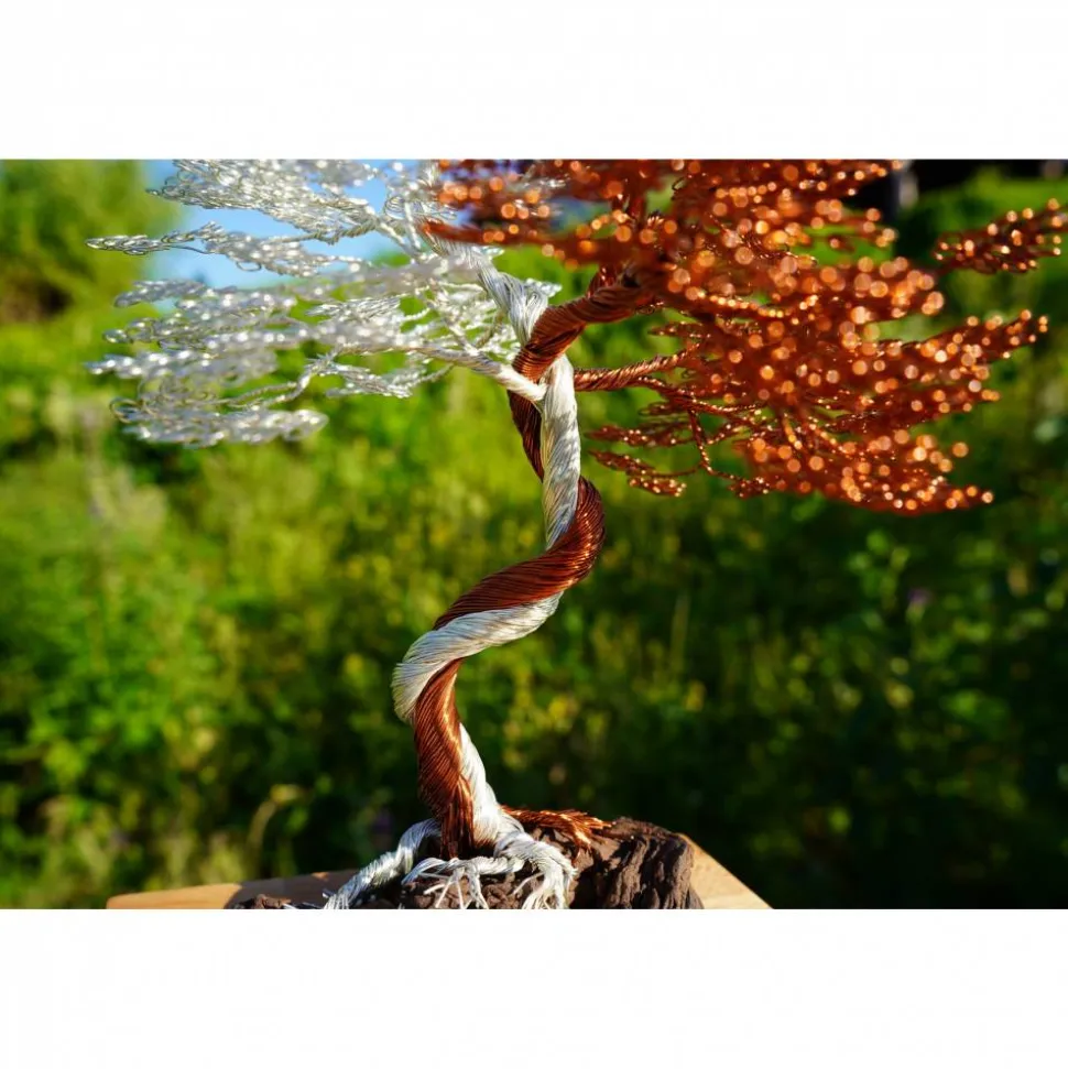 Durch die Silber- und Kupferdraht-eigene Lichtreflexion wirkt der Drahtbaum in jeder Situation als absoluter Blickfang.