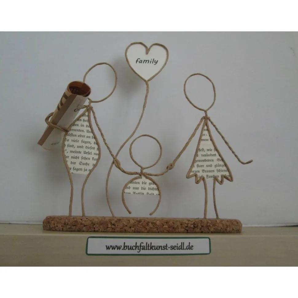 Meine zahlreichen, verschiedenen Drahtfiguren sind ein süßes, kleines Geschenk, z.B. für Hochzeit, Valentinstag, Geburtstag, Jahrestag, Weihnachten etc. oder eine hübsche Dekoration im eigenen Zuhause. Jede Figur fertige ich in liebevoller Handarbeit aus Papierdraht, Buchseiten mit altdeutscher Schrift und Korkplatten speziell für Sie an. Einige Figuren sind individualisierbar und personalisierbar, indem ich z.B. in die Schilder oder Herzen Ihre Wunsch-Namen oder -Wörter einfüge.