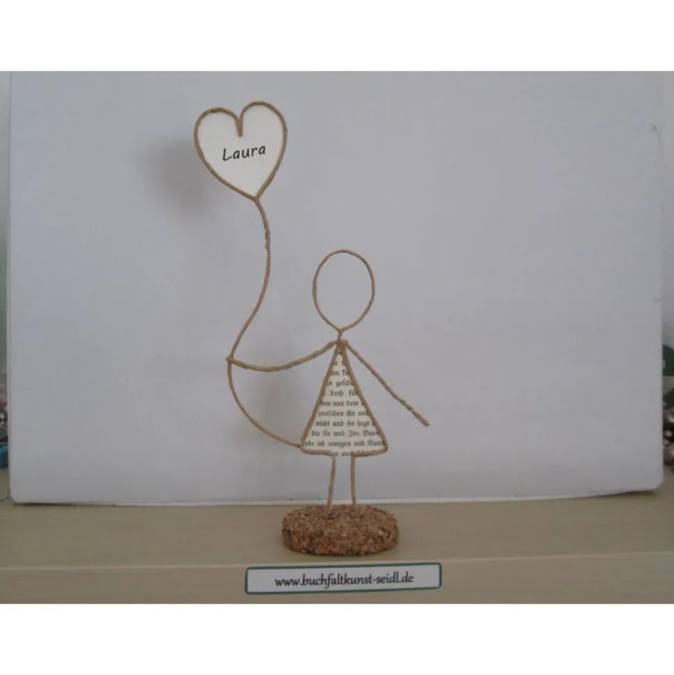 Drahtfigur mit Herzballon, personalisierbar, als Geschenk für Geburtstag/Valentinstag/Jahrestag/Weihnachten, ca. 20 cm