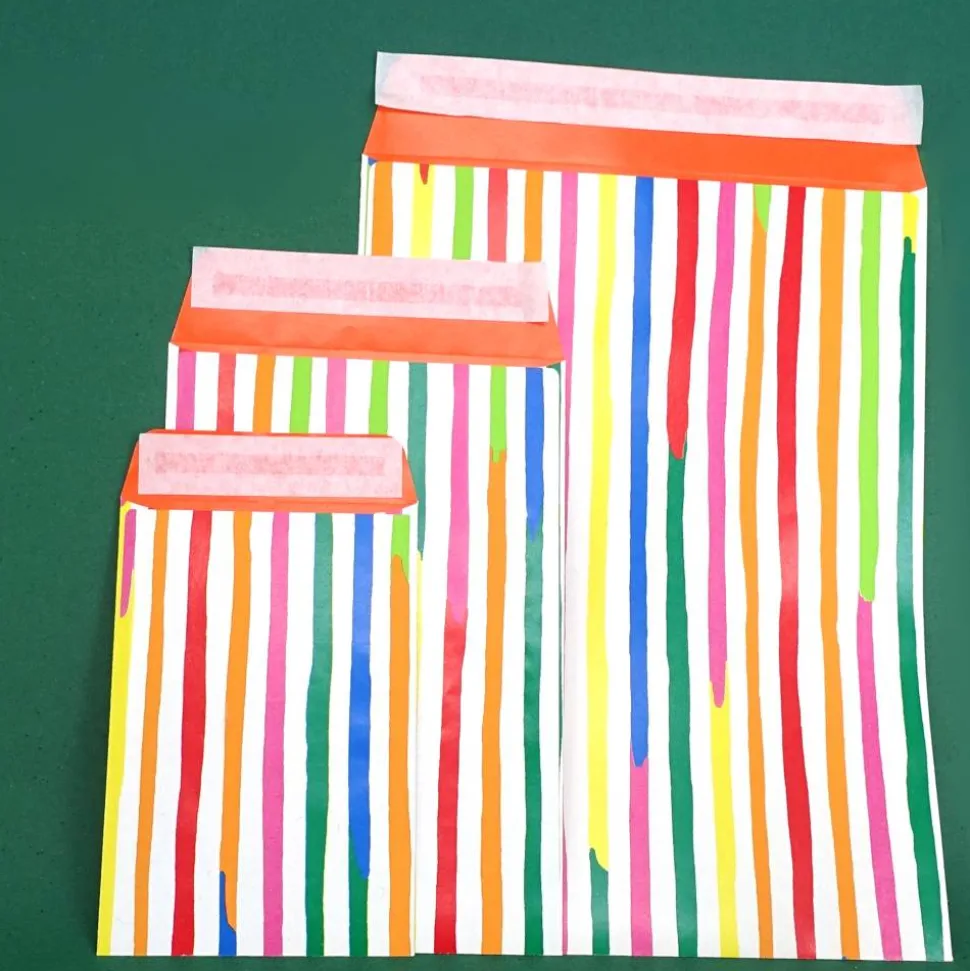 Drei bunt gestreifte Papier Flachbeutel in 3 Größen