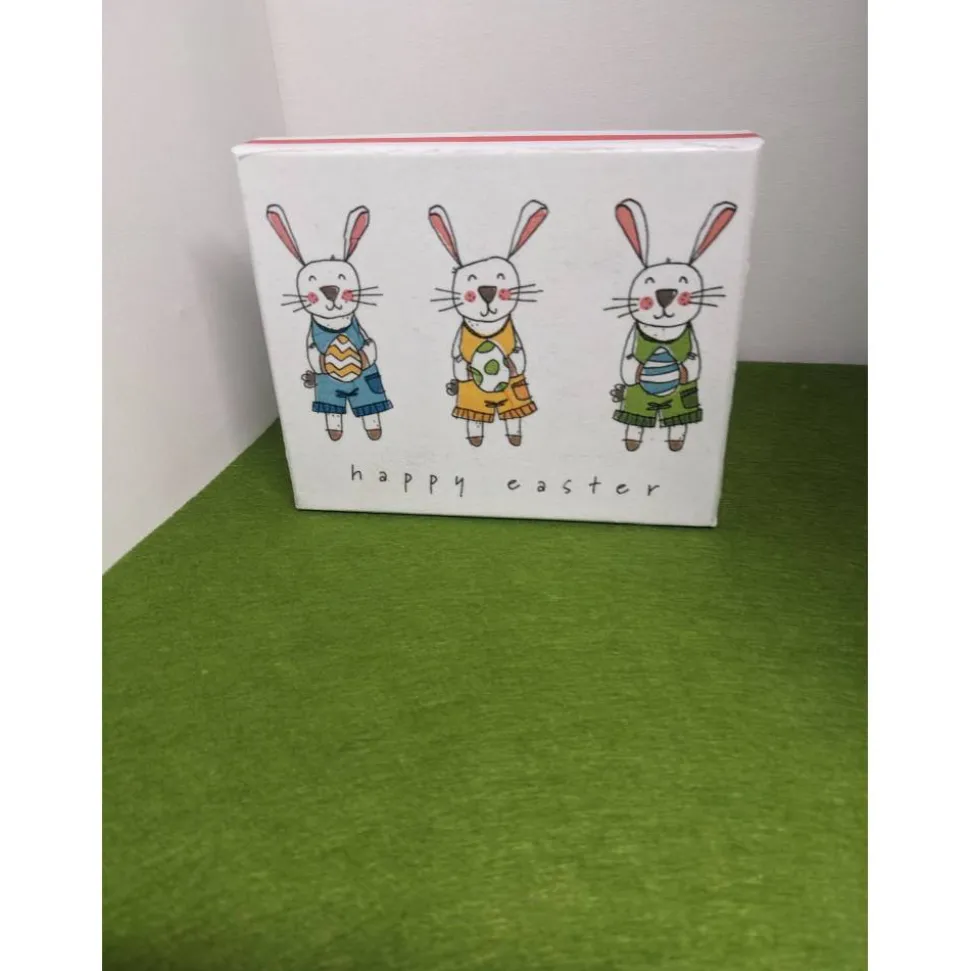 schön verziert mit österlichen Serviettenmotiven. Klebeband vervollständigt das Dekor.