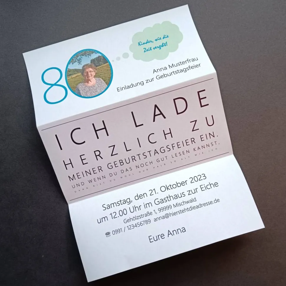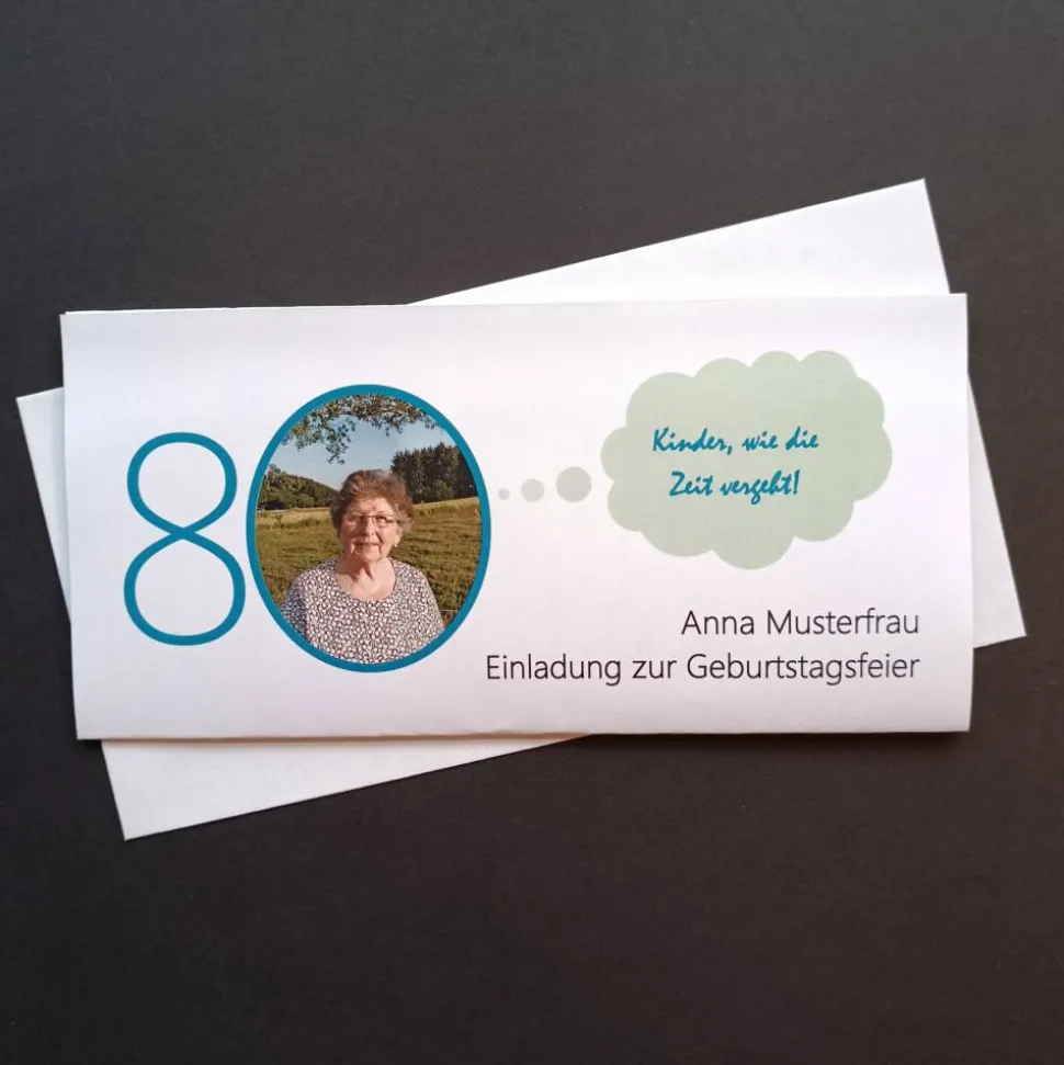 Als fertige Drucksache wird die Einladung auf A4 reinweißes Papier mit Farblaser gedruckt. Nach dem Falten passt sie perfekt in ein DIN-lang Kuvert, welches gerne mitbestellt werden kann. Die Kuverts sind reinweiß mit Klebestreifen.