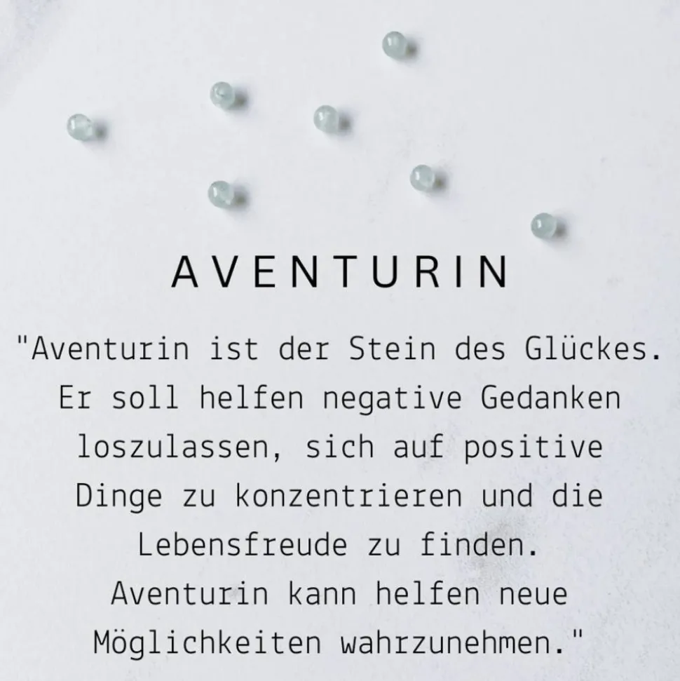 Aventurin ist der Stein des Glückes. Er soll helfen, negative Gedanken loszulassen, sich auf positive Dinge zu konzentrieren und die Lebensfreude zu finden. Aventurin kann helfen neue Möglichkeiten wahrzunehmen!