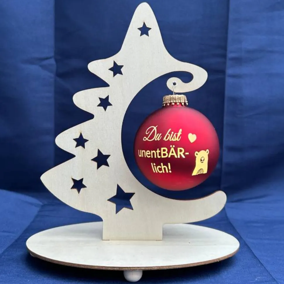 Ein besonderes Highlight ist die integrierte LED-Innenbeleuchtung, die die Gravur von innen heraus zum Leuchten bringt – ideal als liebevolle Dekoration im Weihnachtsbaum oder auf dem Tisch.
