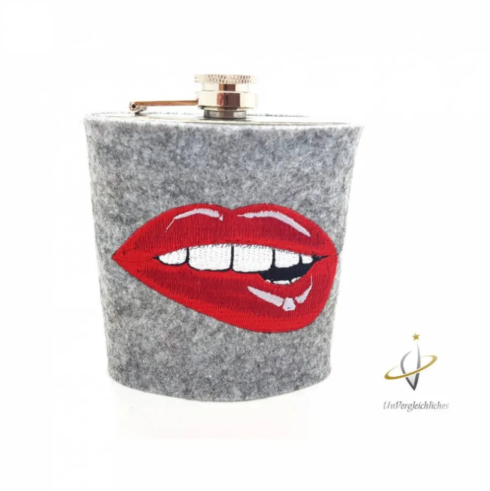 ♥ Ein Flachmann aus hochwertigem Edelstahl mit Schraubverschluss und einer handlichen toll bestickten Filzhülle ♥