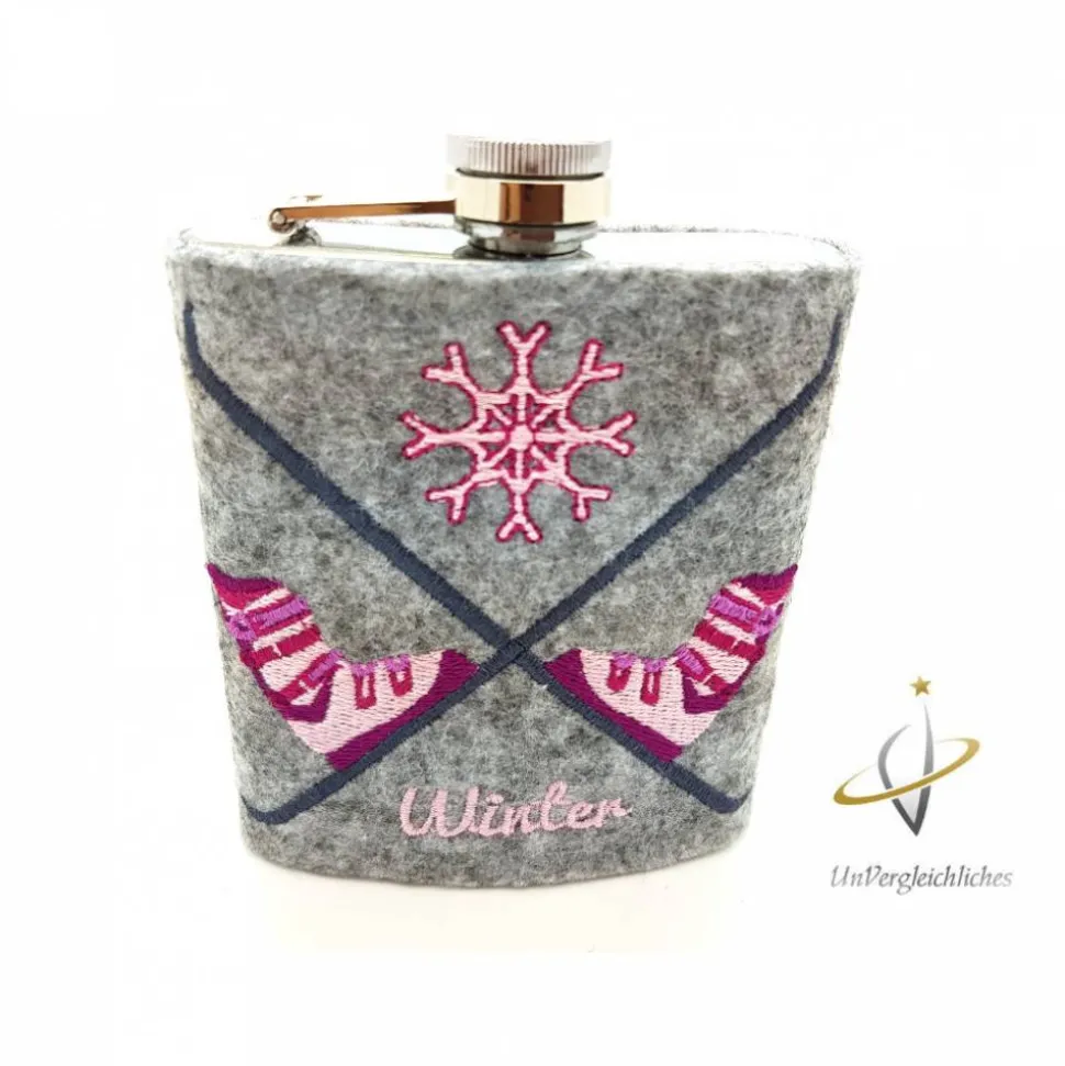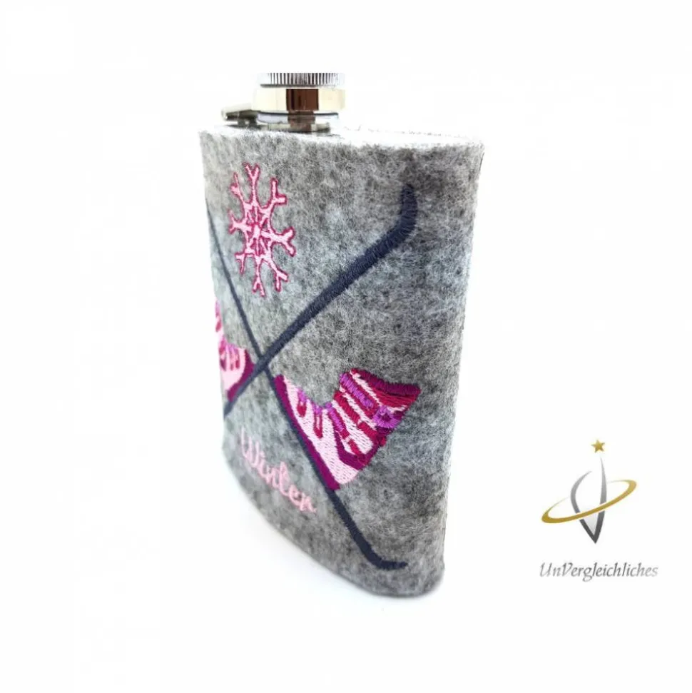 ♥ Ein Flachmann aus hochwertigem Edelstahl mit Schraubverschluss und einer handlichen toll bestickten Filzhülle ♥