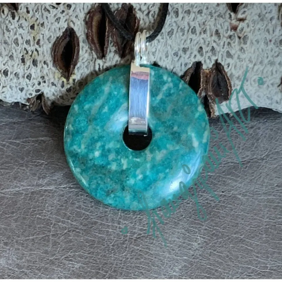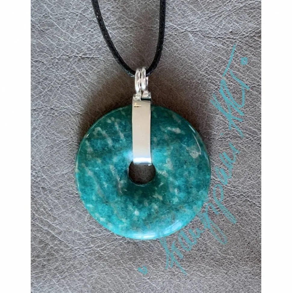 Ein ganz besonderes Schmuckstück, welches mit einer ca. 1m langen, schwarzen und feinen Ziegenlederkette in einem Leinensäckchen verpackt, ein tolles Geschenk für die Frau, die Mutter, die Schwester oder für sich selber daherkommt!