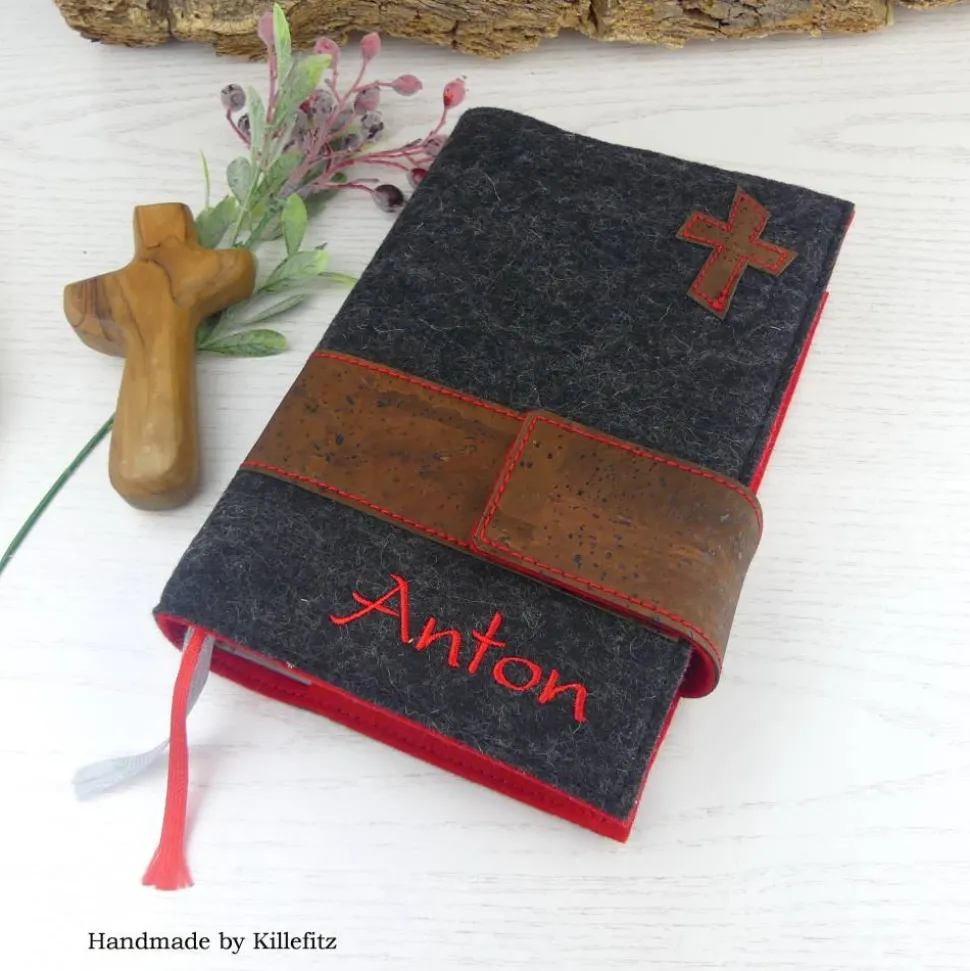 Entdecke die zeitlose Gotteslobhülle / Bibelhülle für Erstkommunion, Konfirmation oder Firmung – aus hochwertigem Filz und nachhaltigem Kork, liebevoll handgefertigt.