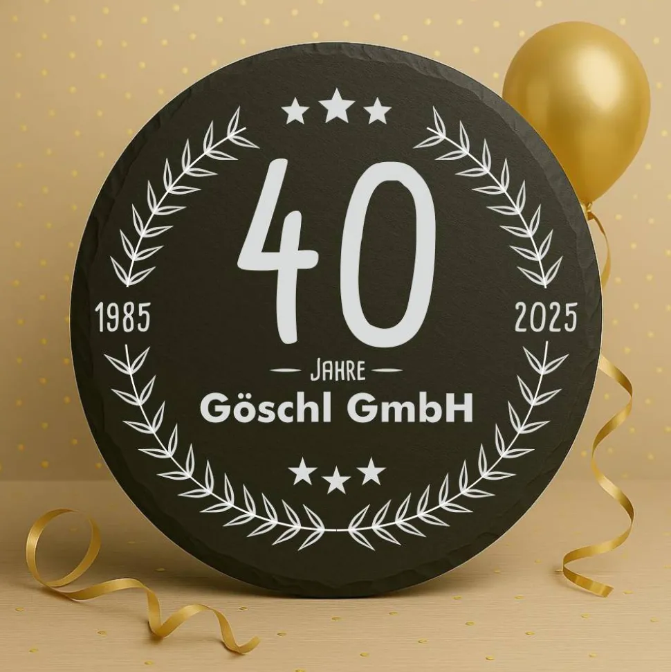 Ein Jubiläum ist ein Moment voller Erinnerungen, Liebe und gemeinsamer Geschichte. Mit dieser personalisierten Schiefertafel verschenkst du ein Stück davon – für die Ewigkeit festgehalten in echtem Stein. Ob Hochzeitstag, Freundschaftsjubiläum oder Firmenfeier: Diese edle Tafel aus Naturstein wird individuell für dich graviert und ist ein einzigartiges Geschenk für besondere Menschen. Die Gravur kann Namen, Daten, Zitate oder persönliche Botschaften enthalten – ganz nach deinen Wünschen. Die natürliche Maserung des Schiefers macht jede Tafel zu einem Unikat.